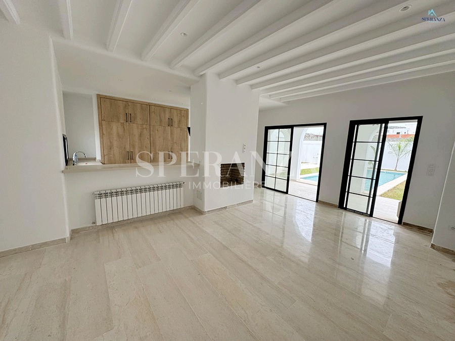 Speranza Real Estate Hammamet presents Villa Kristen, a stylish S+3 villa for sale in Hammamet priced at 850,000 TND. This charming property offers spacious interiors, refined finishes, and a peaceful setting—ideal for those seeking a permanent residence or a smart investment in Tunisia’s coastal paradise.