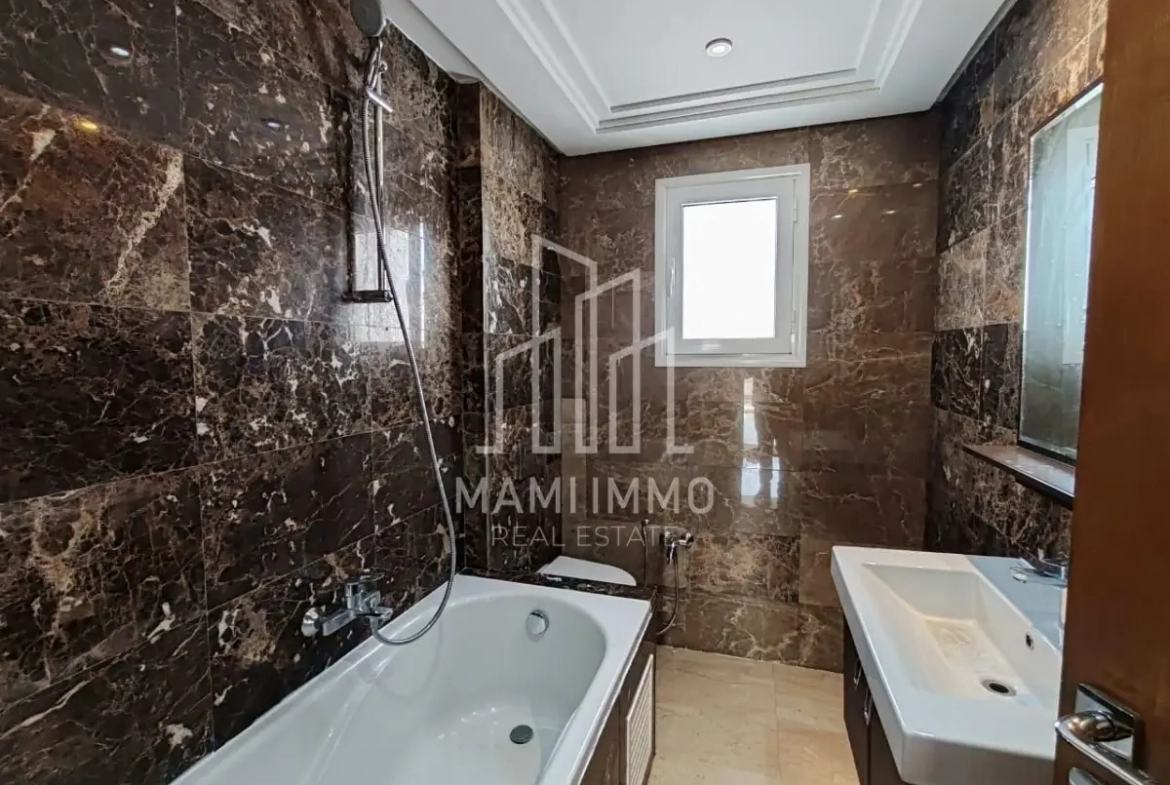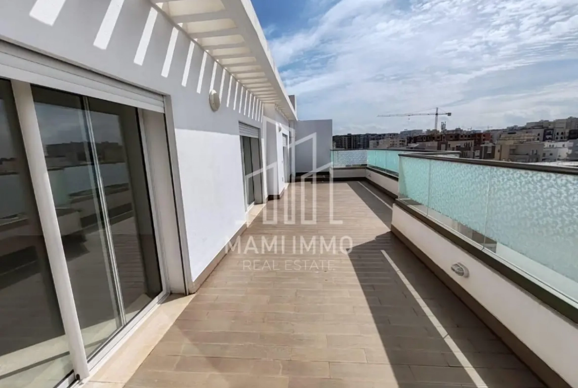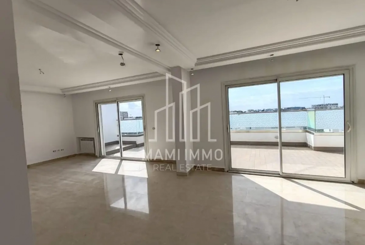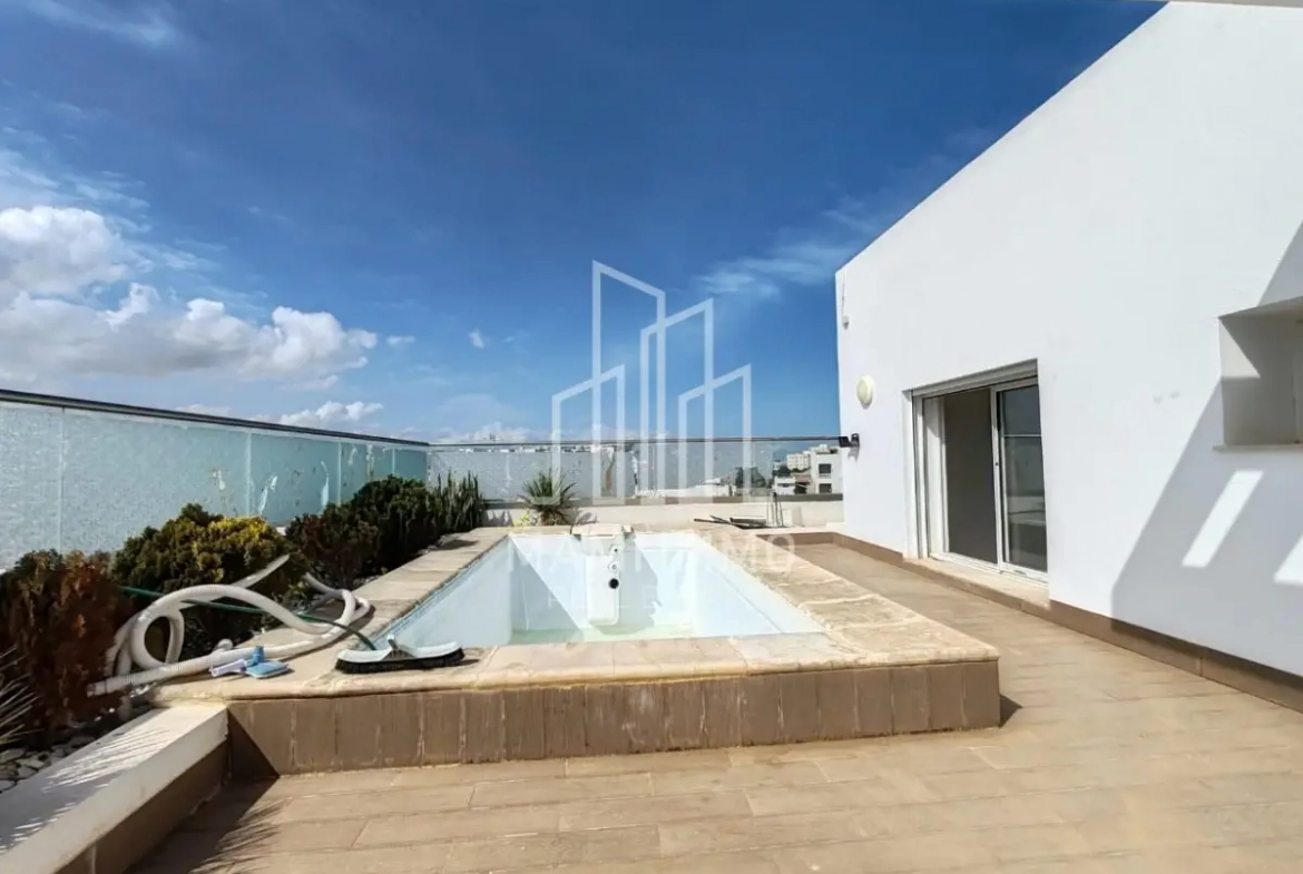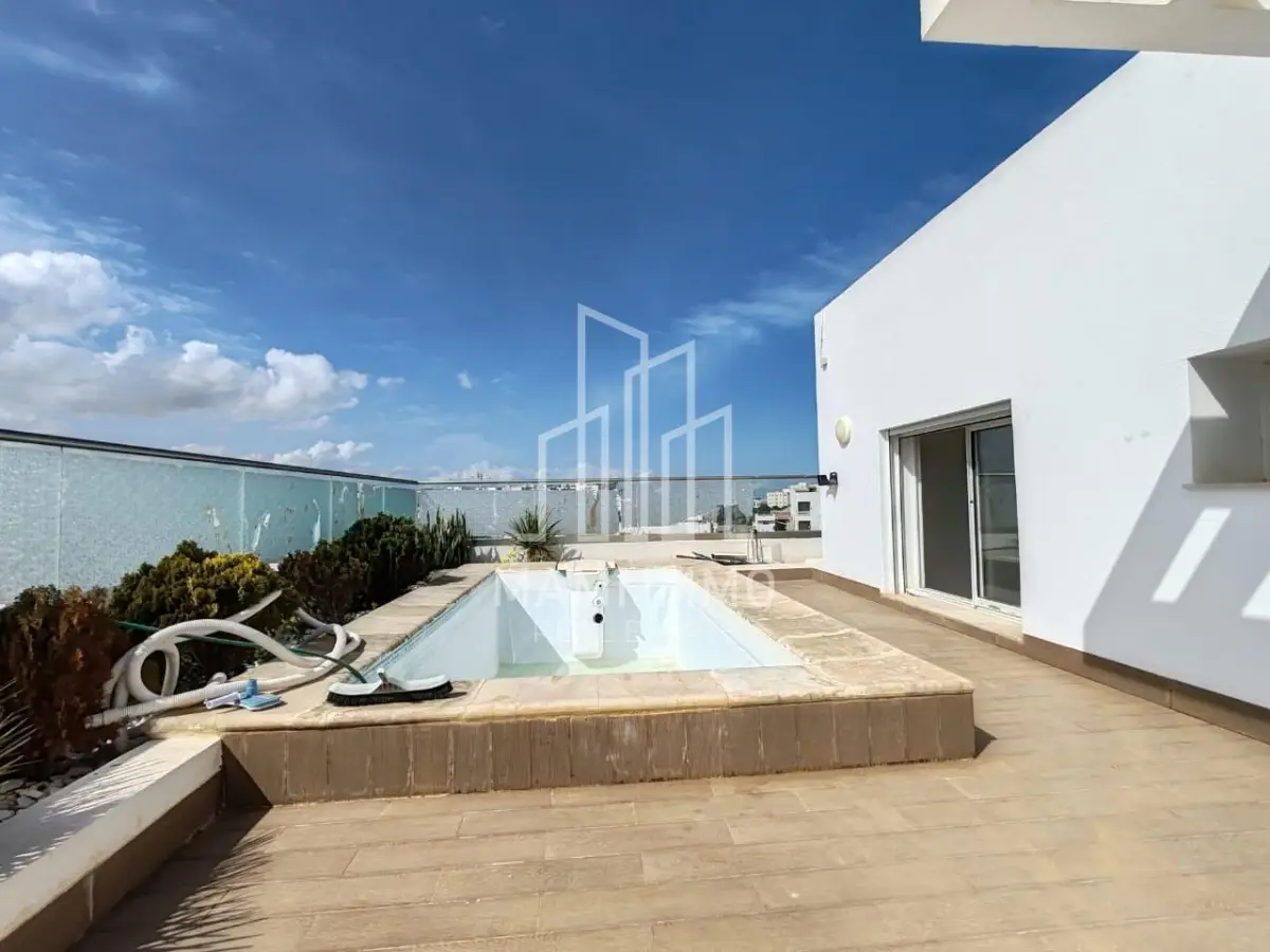Mami Immo Real Estate presents an exceptional penthouse for rent in Jardins de Carthage, located on the top floor (3rd) of a prestigious residence. Spanning 240 m², this high-end property offers panoramic views, premium finishes, and a private pool for your comfort and relaxation.