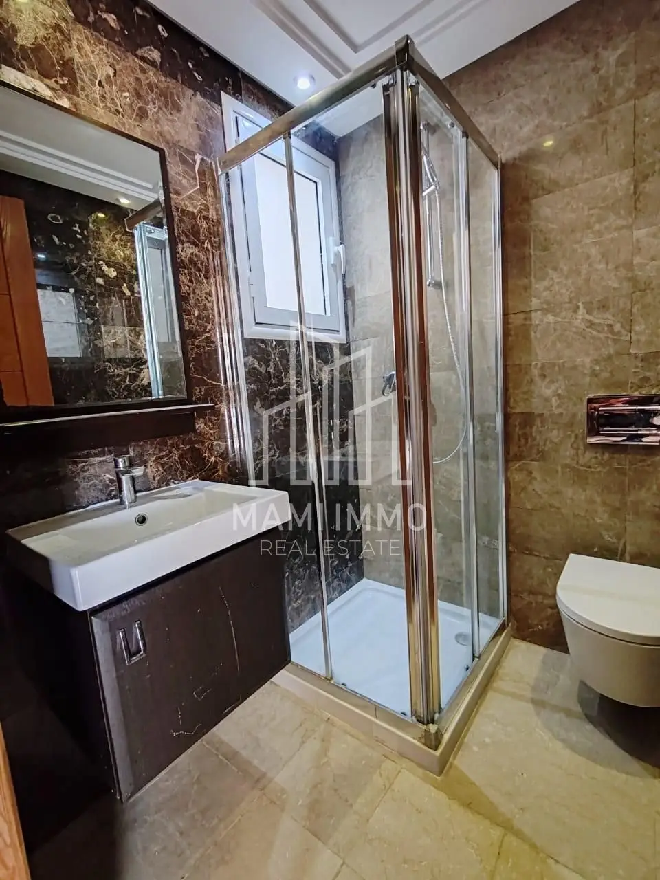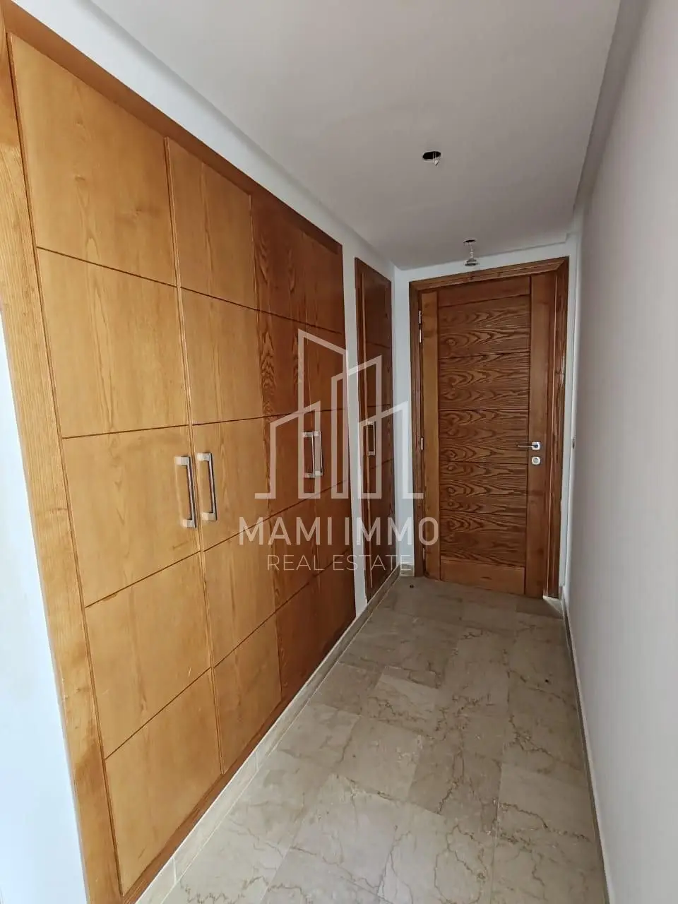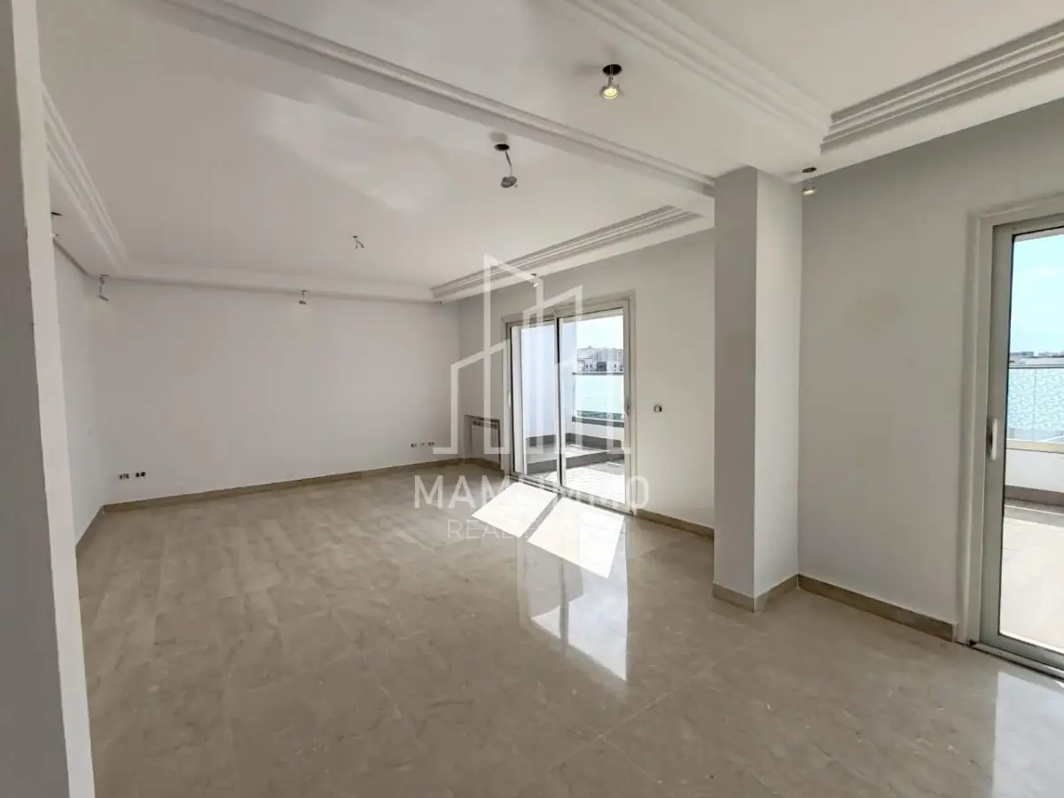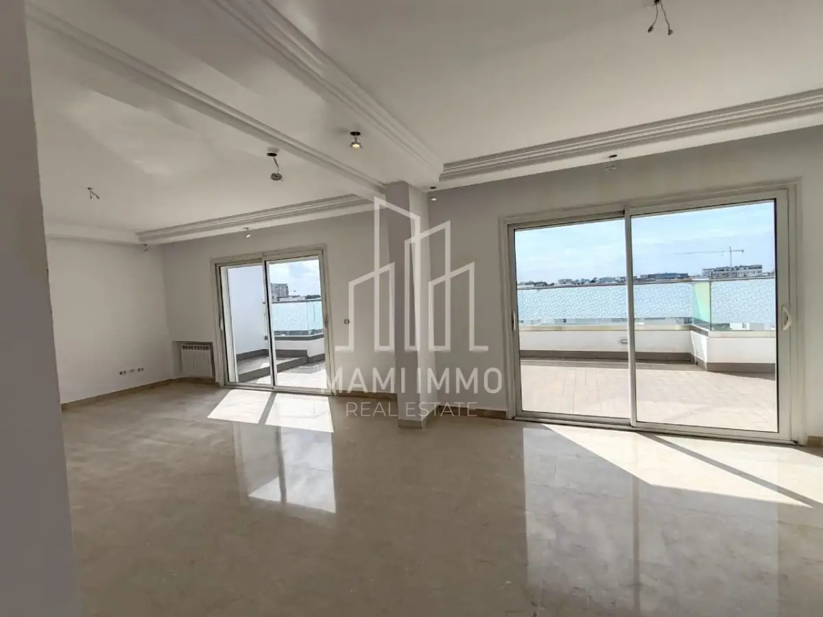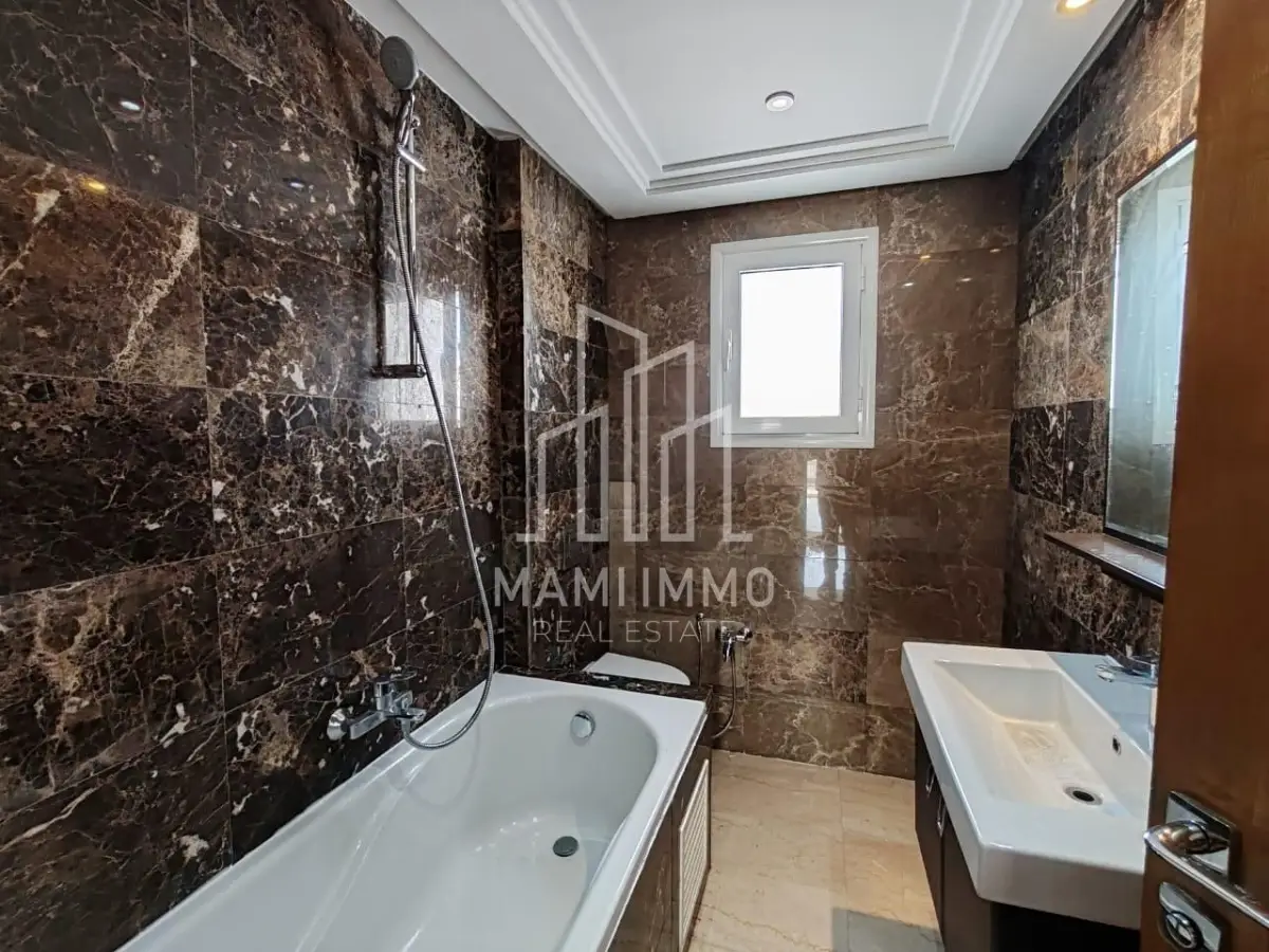 Mami Immo Real Estate presents an exceptional penthouse for rent in Jardins de Carthage, located on the top floor (3rd) of a prestigious residence. Spanning 240 m², this high-end property offers panoramic views, premium finishes, and a private pool for your comfort and relaxation.