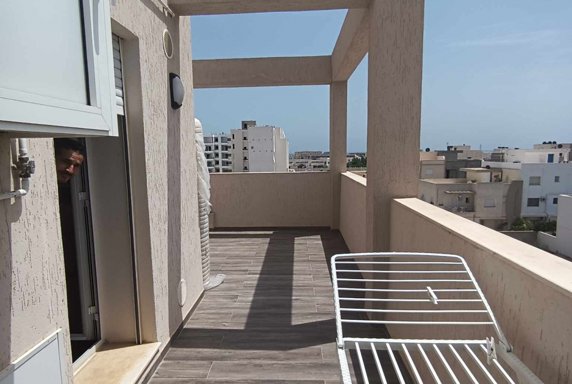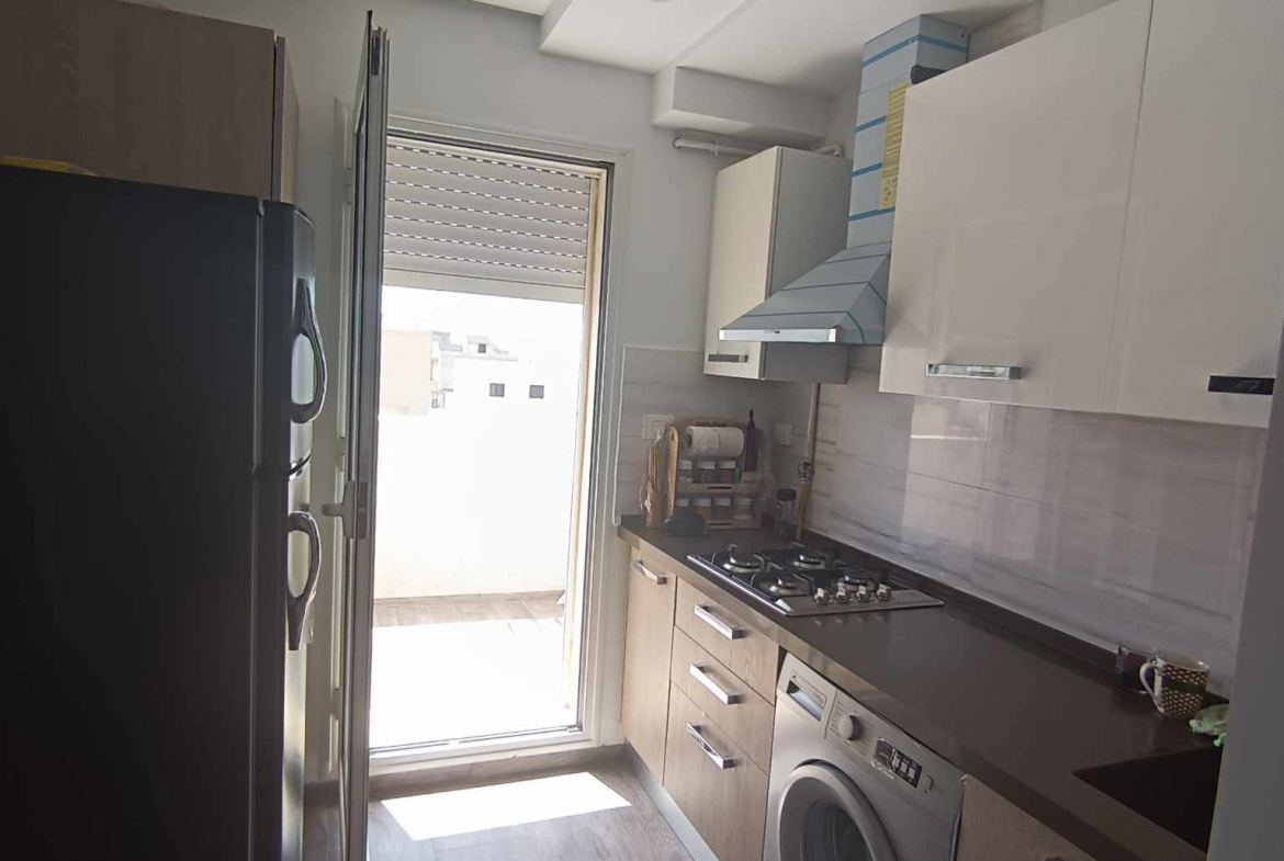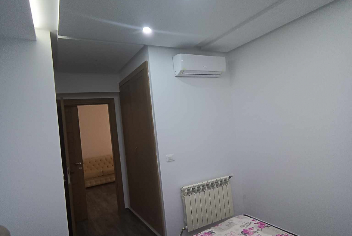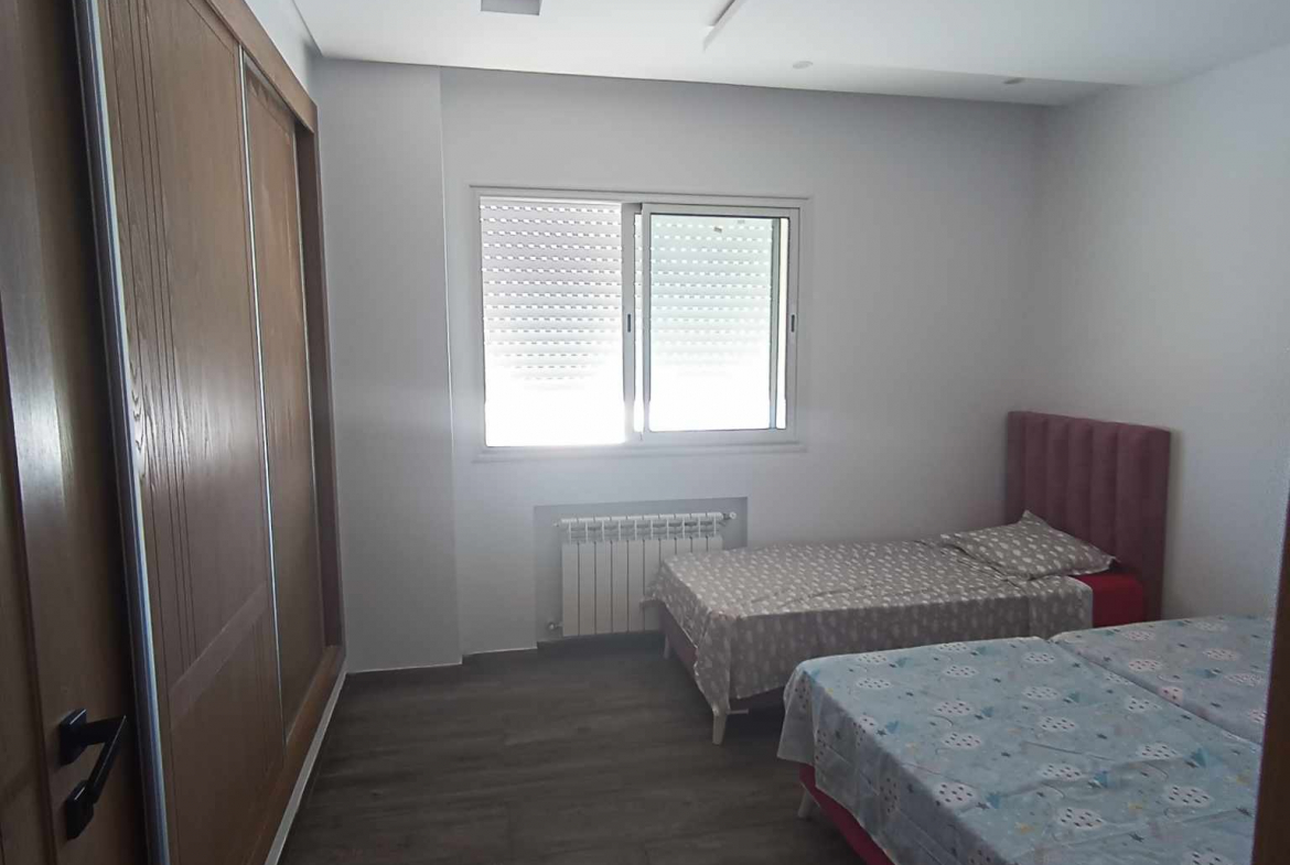 Alwafa Real Estate Agency presents a comfortable S+2 apartment for vacation rental in Mrezga AFH2, ideal for a relaxing summer stay. Located in the popular Cité Alwafa AFH2 area, this apartment is equipped with air conditioning and central heating, ensuring year-round comfort. The unit also provides access to a community pool, perfect for unwinding during the warm months.