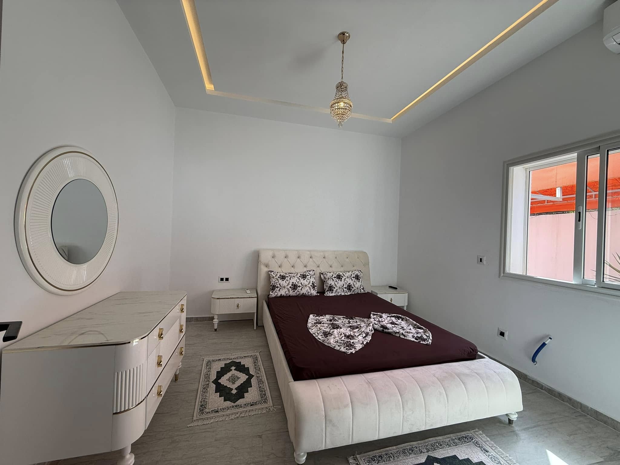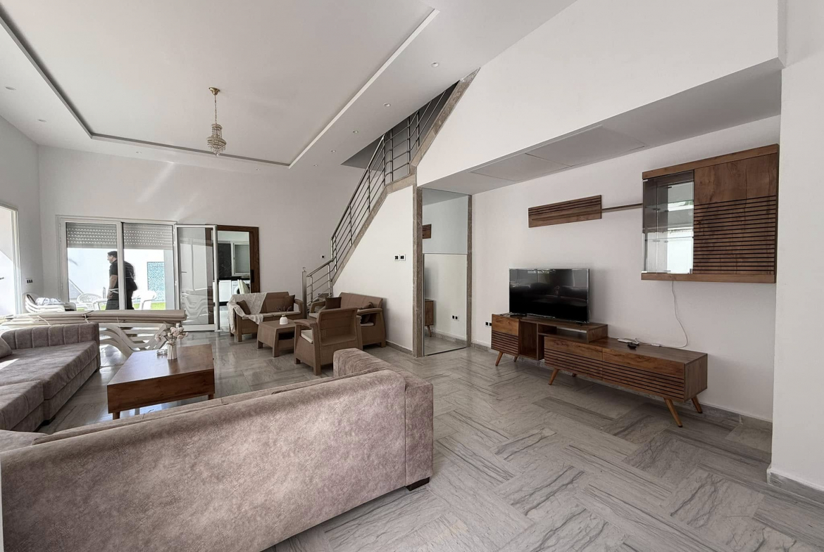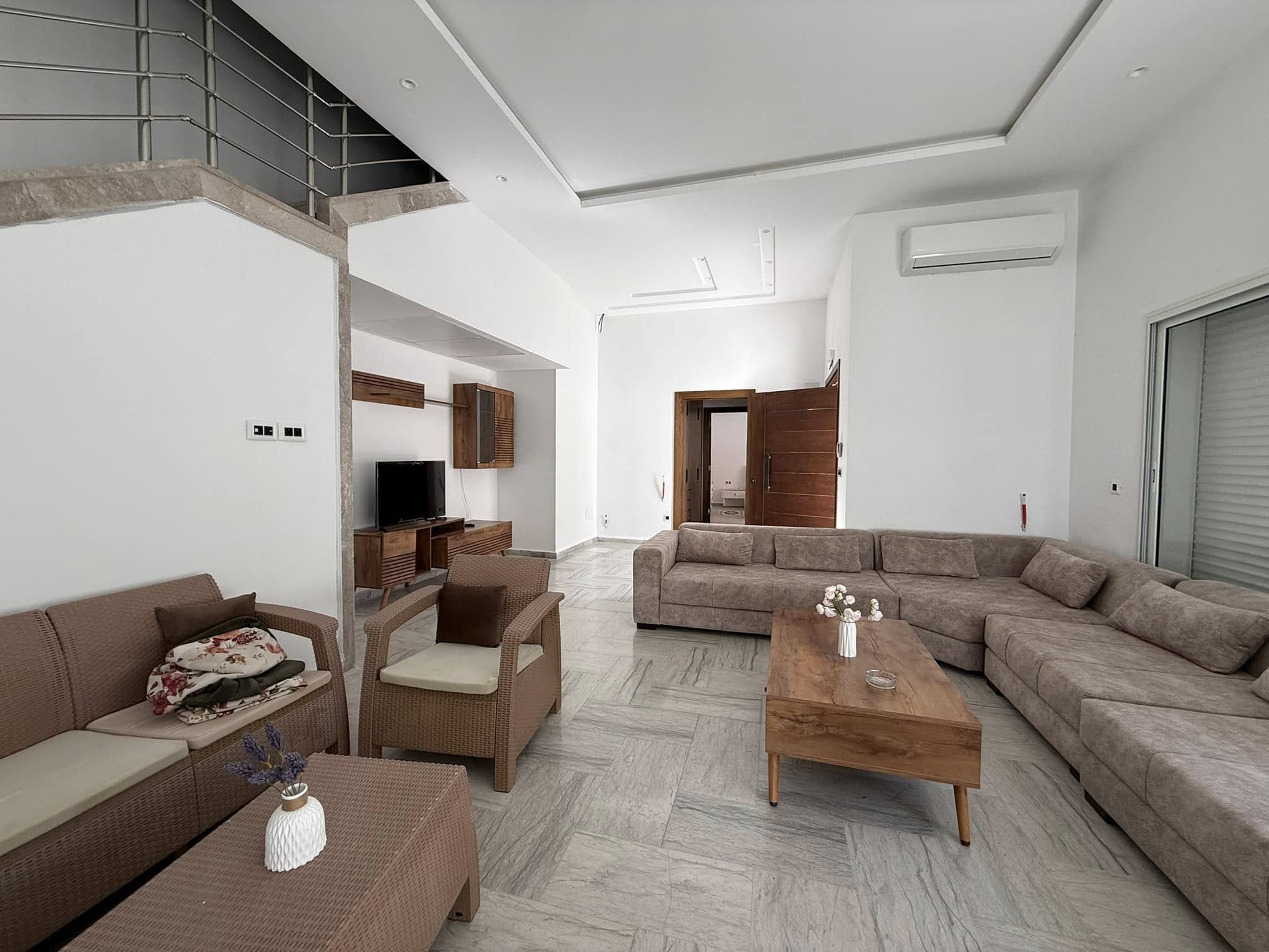 L'AGENCE IMMOBILIÈRE VIP BUSINESS propose une magnifique villa à louer à Hammamet Mrezga pour les mois d'été de juin, juillet et août. Idéalement située près de l'hôtel La Badira, cette propriété se trouve dans un quartier résidentiel paisible à quelques pas de la plage. Que vous planifiez des vacances en famille ou une retraite estivale paisible, cette villa à louer à Hammamet Mrezga offre la combinaison parfaite de confort, d'intimité et de charme côtier.