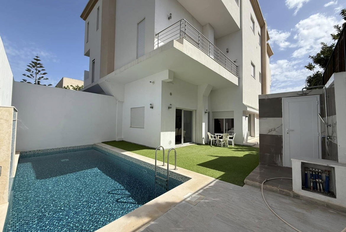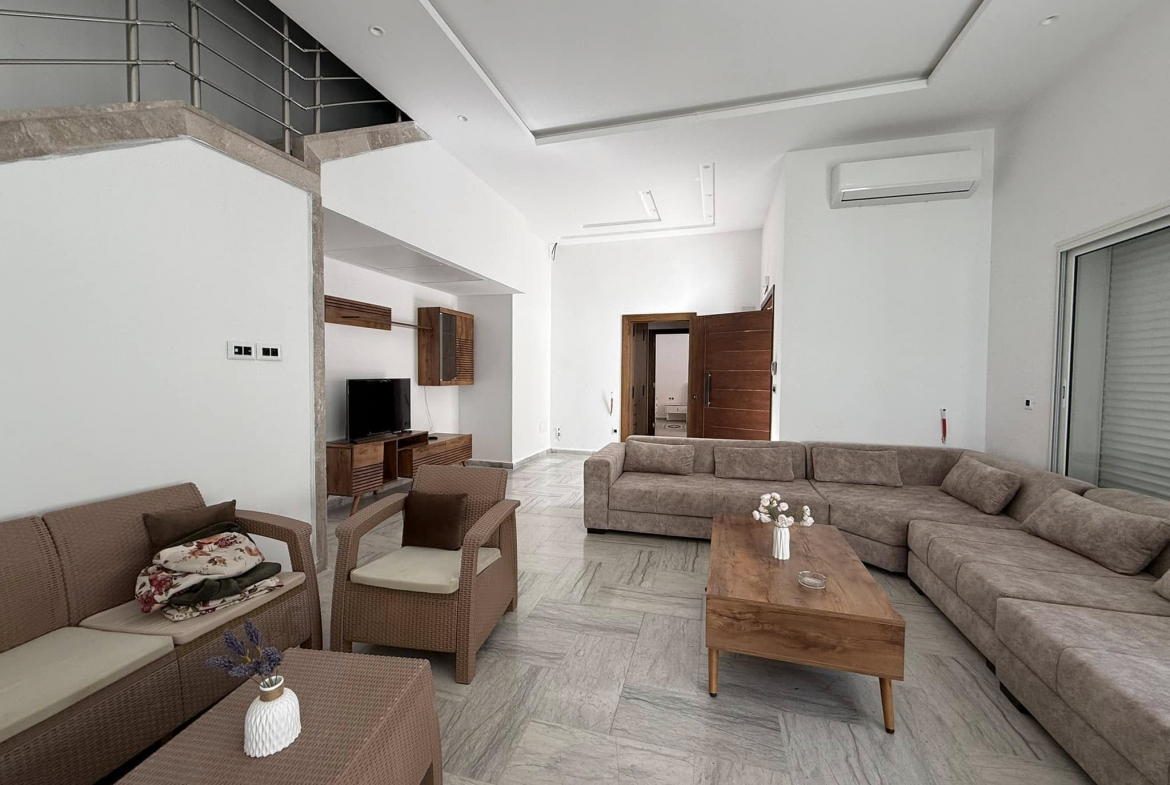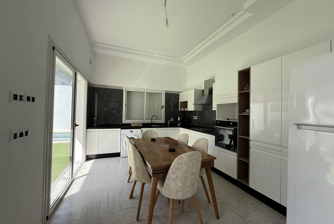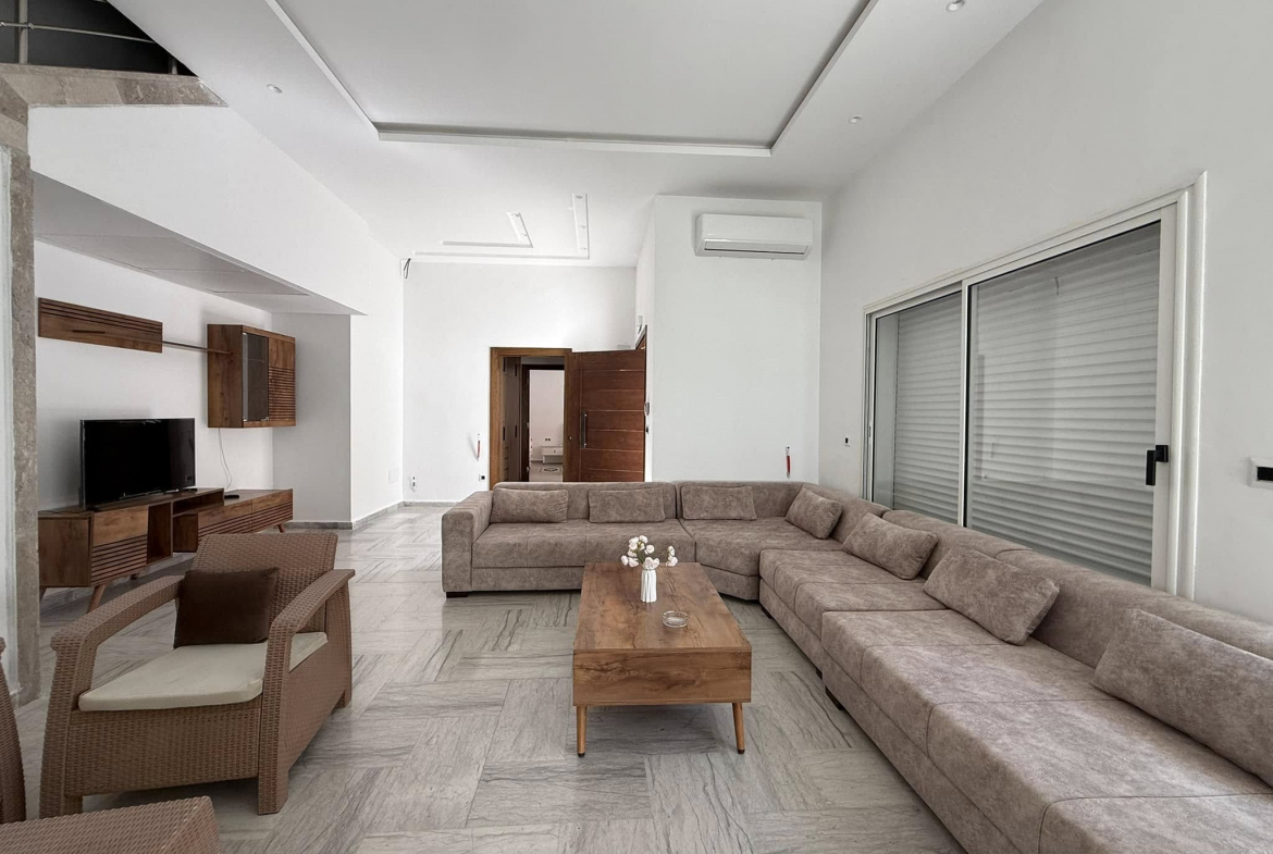 L'AGENCE IMMOBILIÈRE VIP BUSINESS propose une magnifique villa à louer à Hammamet Mrezga pour les mois d'été de juin, juillet et août. Idéalement située près de l'hôtel La Badira, cette propriété se trouve dans un quartier résidentiel paisible à quelques pas de la plage. Que vous planifiez des vacances en famille ou une retraite estivale paisible, cette villa à louer à Hammamet Mrezga offre la combinaison parfaite de confort, d'intimité et de charme côtier.