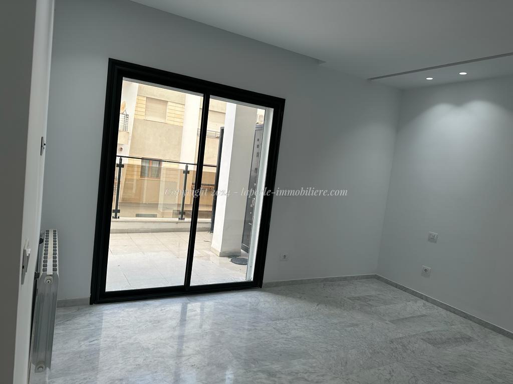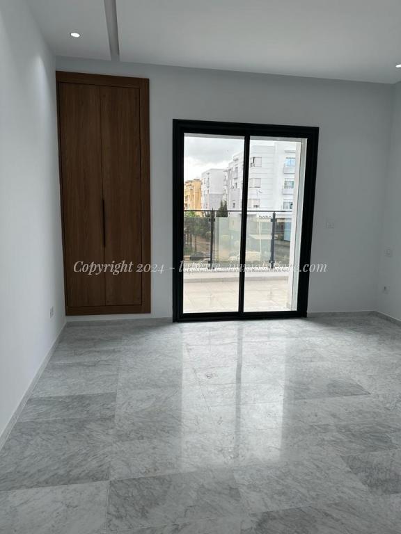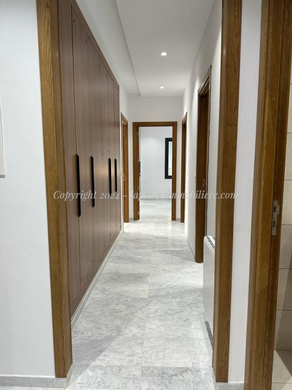 Presenting an exquisite High-Standing Residence in Jardin Carthage, a perfect blend of sophistication and comfort. This S+3 apartment, located within an elegant R+4 residence, boasts a total area of 230 m² with 190 m² of refined living space. Priced at 900,000 MD, this property features a grand living room with a terrace perfect for relaxation, a master suite, two additional stylish bedrooms, and an equipped kitchen designed for practicality and style. Completing the layout are a modern bathroom, a guest WC, and a dedicated parking space for your utmost convenience.