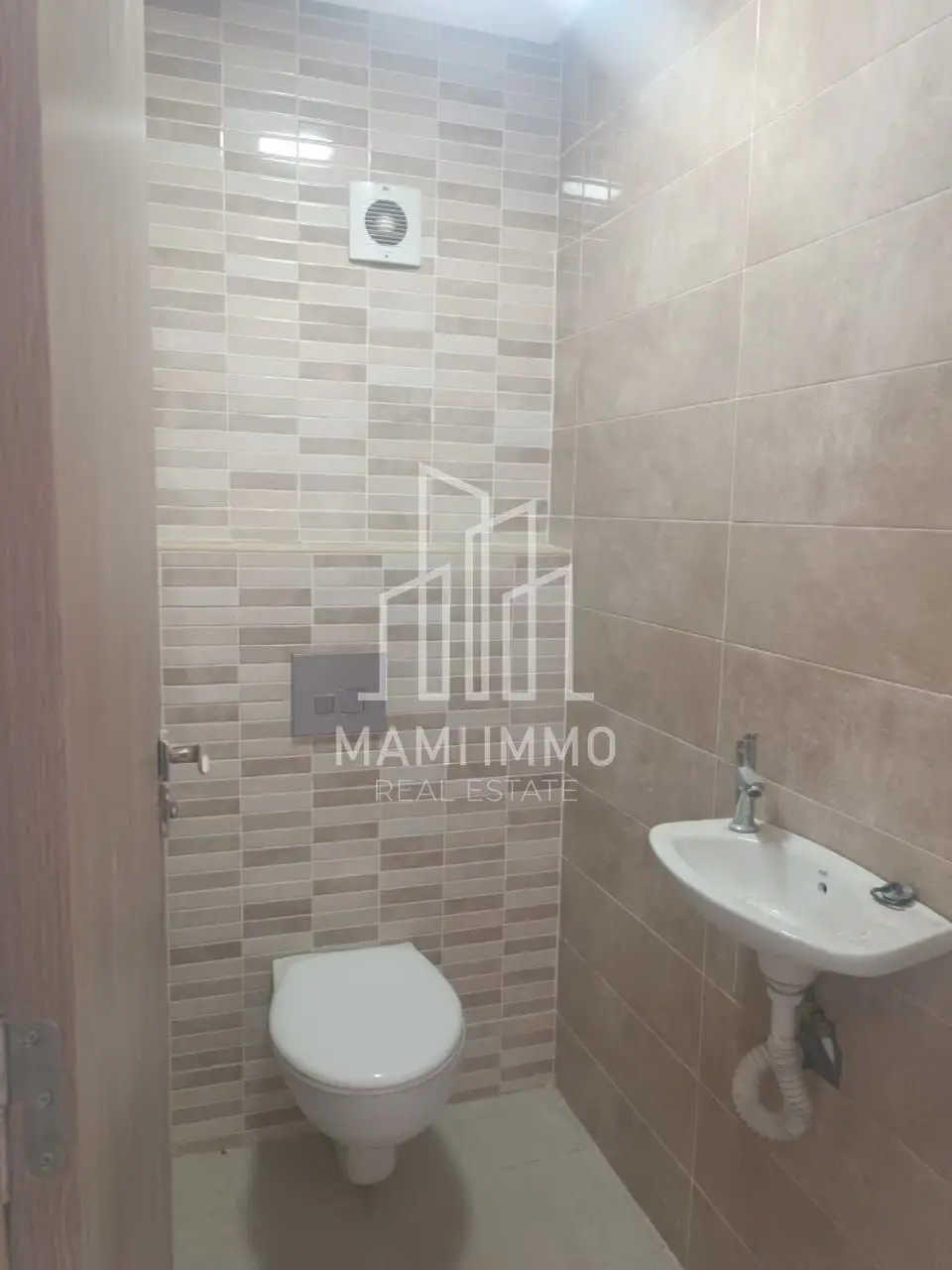 Bright and functional, this open space office for rent in Jardins d’el Menzah 2 benefits from a strategic location in Ariana, offering easy access to major roads and services.