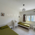 Upstairs has two bedrooms with a shared bathroom and a master suite. The top floor includes a sunny lounge, kitchenette, bedroom, bathroom, and a terrace with sea views. With city gas, heating, air conditioning, and a garage for two cars, this S+3 Vacation Villa for Rent in Hammamet Nord with Pool & Sea View is perfect for your holiday. Price varies by season. Contact Speranza Real Estate at ☎️ 23555199 / 50552450 / 51970200.