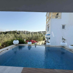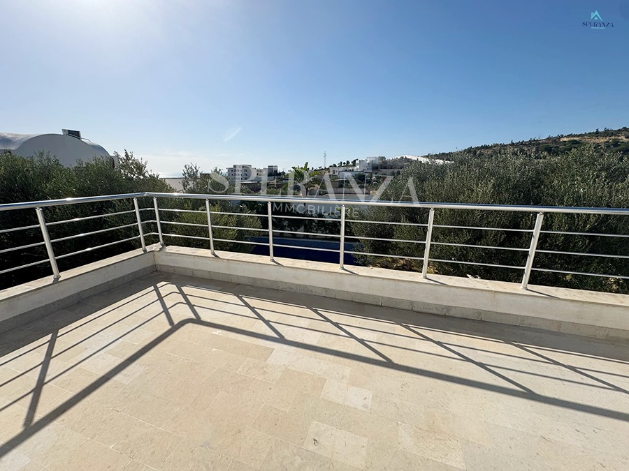 On the first floor, the villa offers a master suite, an additional bedroom, and a terrace with a stunning sea view. There are two toilets in total, and the property includes a garage for your vehicle. With a total surface area of 350 m² and a habitable space of 250 m², this S+3 vacation villa for rent in Hammamet Nord provides the perfect combination of luxury, comfort, and convenience for your holiday stay.