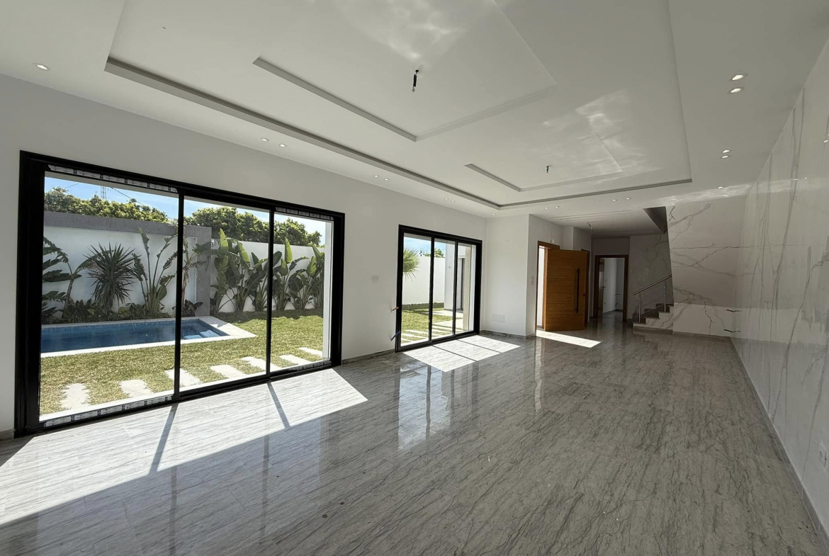 Agence VIP BUSINESS IMMOBILIERS AFFAIRES is proud to present a must-see new villa for sale in a quiet and secure neighborhood near the Kraxi road, Hammamet Nord.