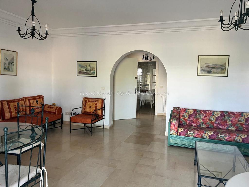 This elegant Apartment S+2 for Sale in Jinen Hammamet on the Ground Floor offers 145 m² total surface and 135 m² of living space in a peaceful, prestigious residence. Priced at 600,000 MD, it features a private garden, exclusive beach access, a spacious living room with garden views, two large bedrooms with wardrobes, a smaller storage room, an equipped kitchen with laundry area, a guest WC, and a bathroom.