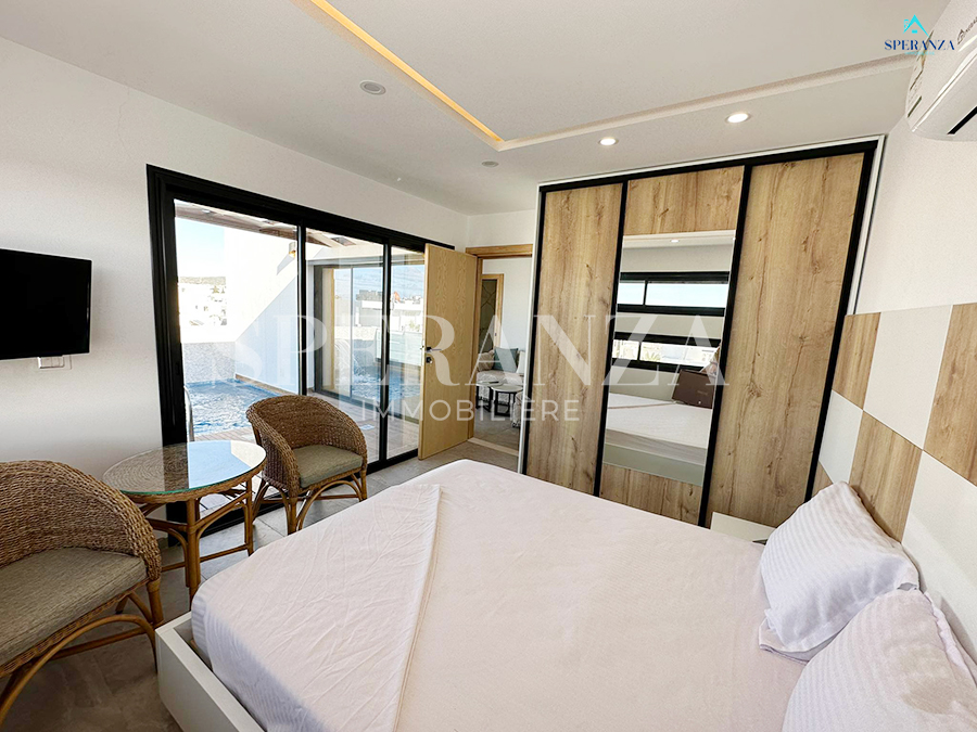 A lovely terrace with access to a shared pool completes this holiday rental. The apartment is also equipped with heating and air conditioning for optimal comfort. This S+1 Vacation Apartment for Rent in Hammamet Centre with Pool is ideal for couples or solo travelers looking for a central and relaxing stay. Price varies by season. For more details, contact Speranza Real Estate at ☎️ 23555199 / 50552450 / 51970200.