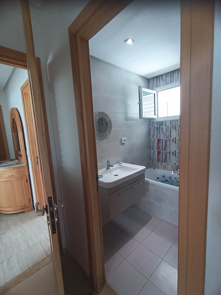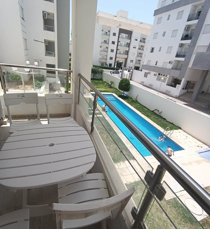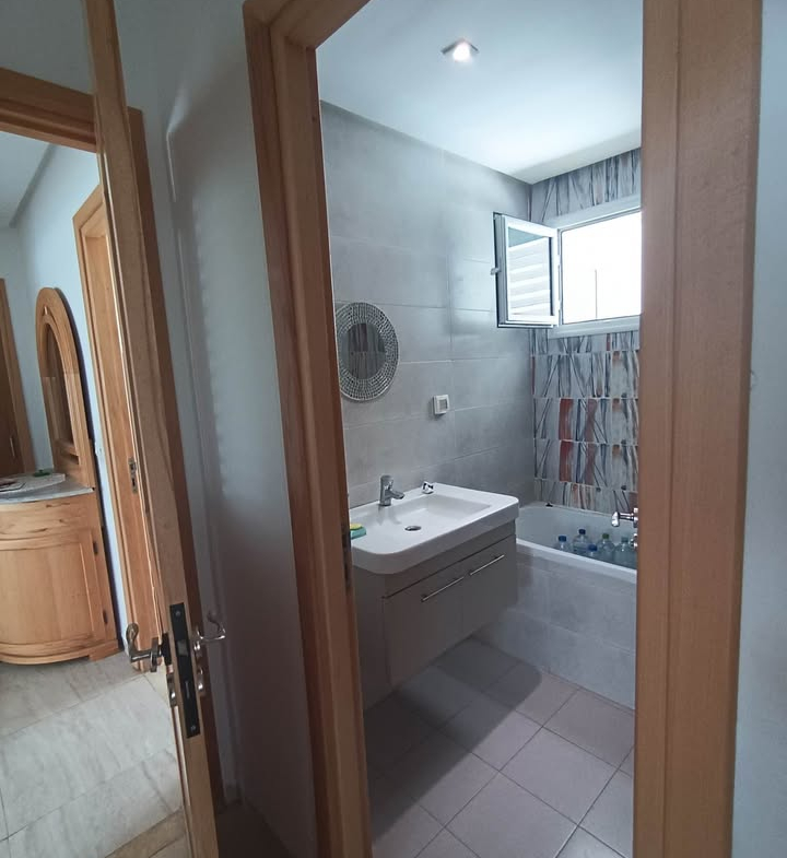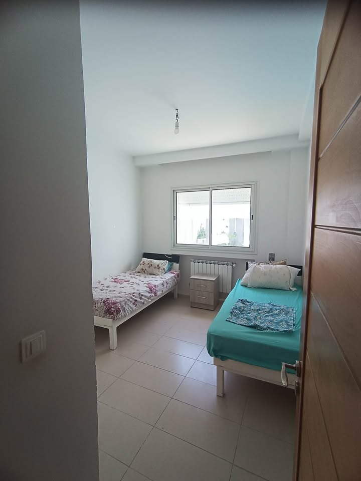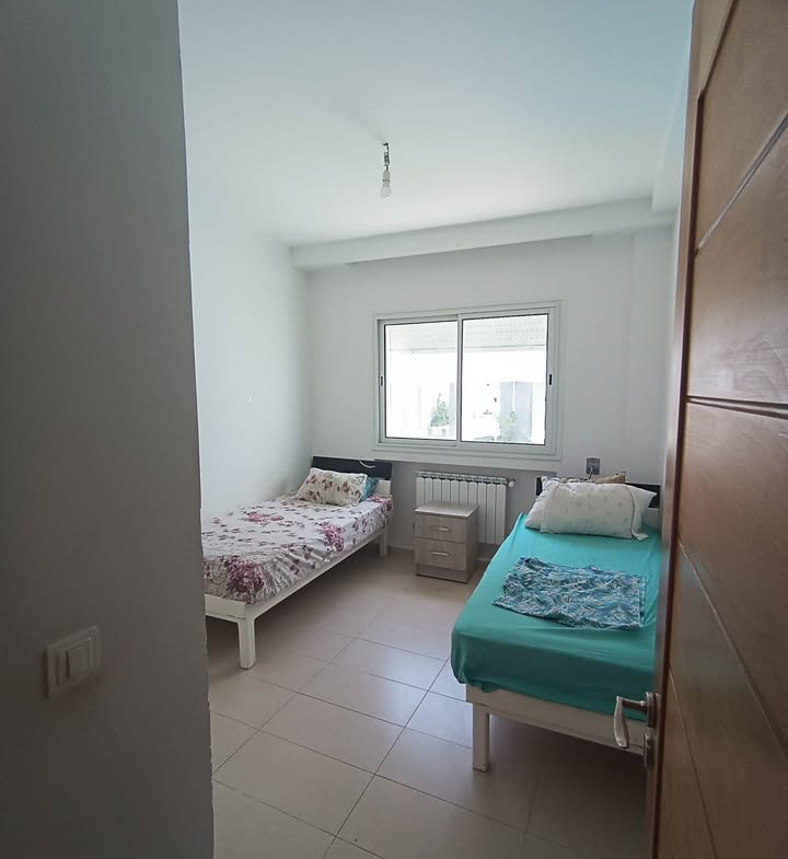 AlWafa Real Estate Agency presents a spacious S+2 Apartment for Vacation Rental in Mrezga, Hammamet, located in the peaceful Cité AlWafa AFH2 neighborhood. This modern summer rental offers a well-equipped living space featuring air conditioning, central heating, a shared swimming pool, and a secure basement parking spot—ideal for families or travelers seeking both comfort and convenience near Hammamet’s beaches.