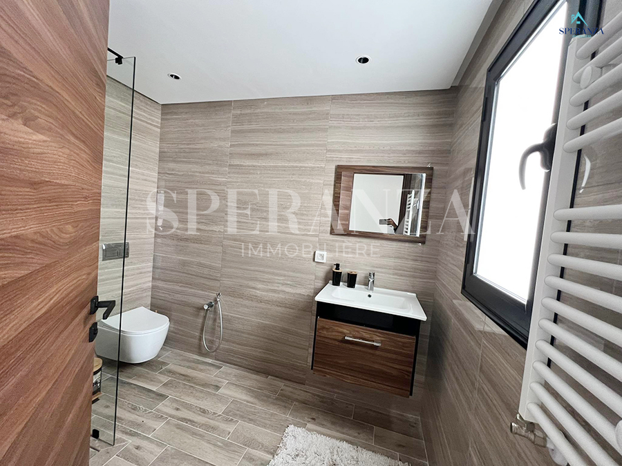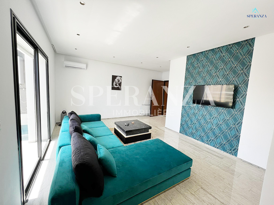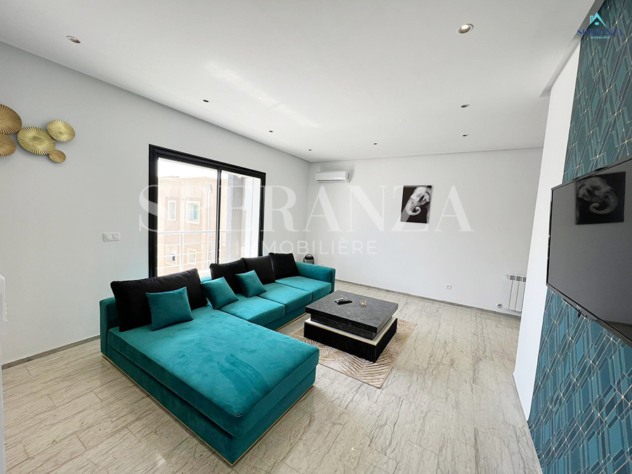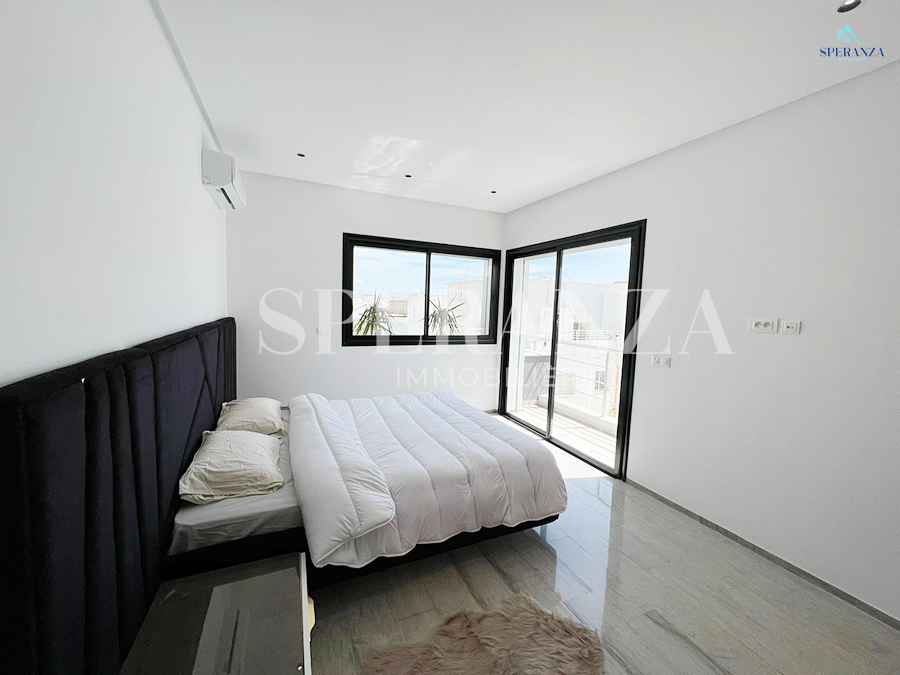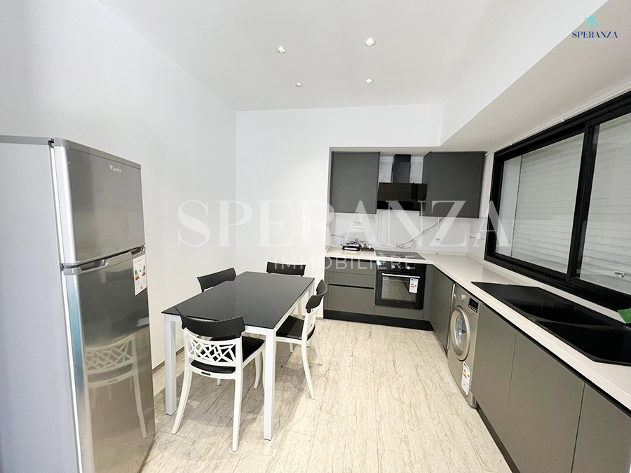 Speranza real estate Hammamet presents this charming S+2 Vacation Apartment for Rent in Hammamet, ideally located in a quiet and secure residence. The apartment opens to a bright and welcoming living room, perfect for relaxing after a day at the beach or exploring the city. The kitchen is well arranged and equipped with all the necessary storage spaces to make your stay comfortable.