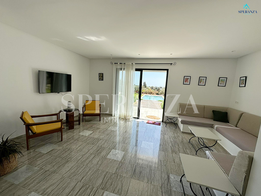 Speranza Real Estate Hammamet presents Villa Angelina, a stunning S+5 vacation villa for rentin Hammamet, available for seasonal rental. With its generous space and refined layout, it’s perfect for families or groups seeking luxury, privacy, and proximity to the beach.