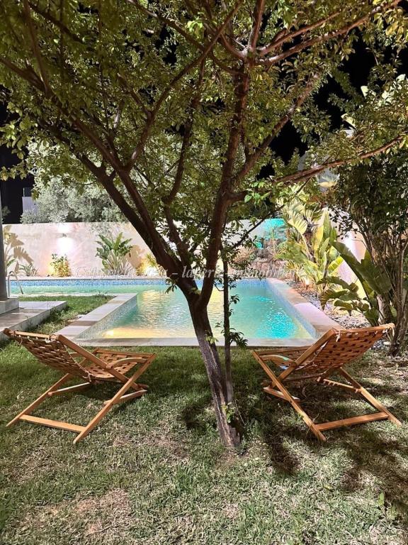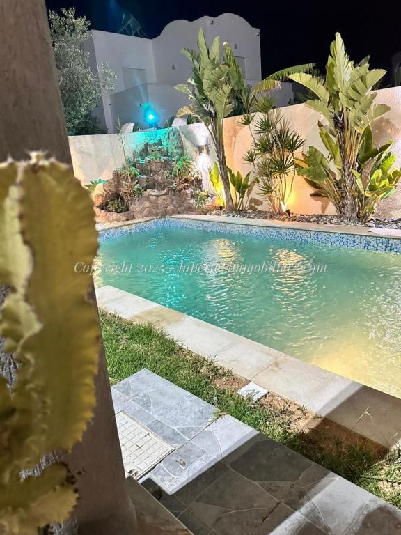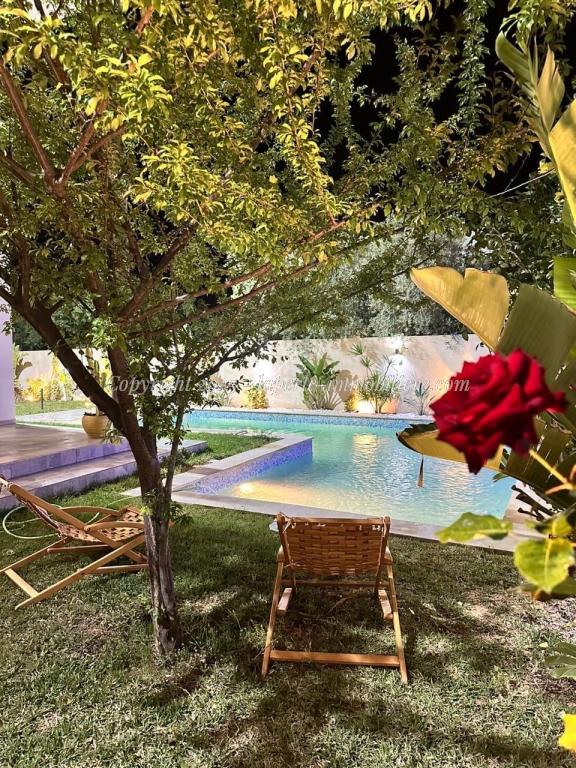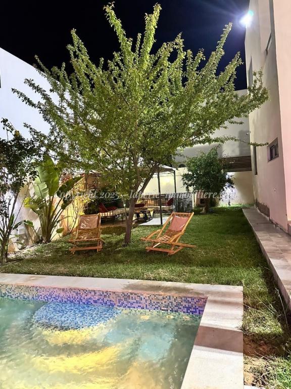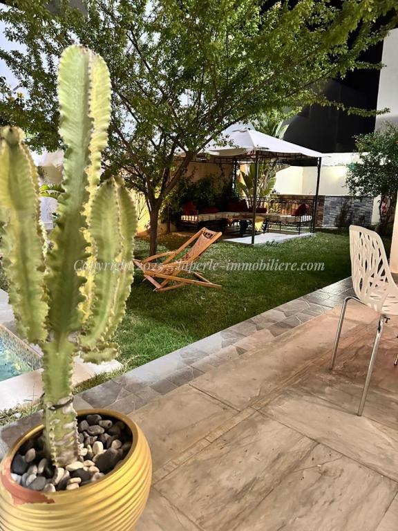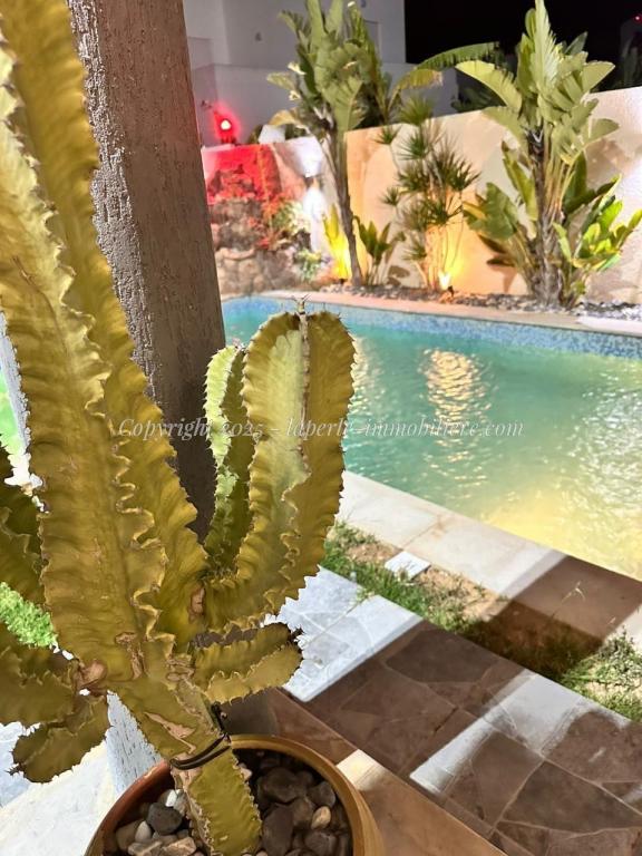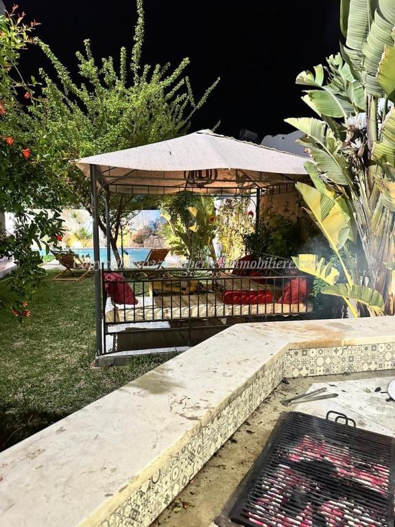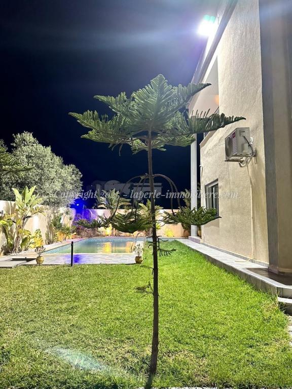 Experience luxury and comfort in this exceptional ground floor villa for sale in Hammamet Sidi Jdid. With 562m² of land and 335m² of living space, this property features three spacious bedrooms, three bathrooms, a large living and dining area, and a fully equipped kitchen. The ground floor also includes a service room and a suite with double dressing and private bath. Outside, enjoy a private pool (8x10m), a relaxation area, a barbecue space, and a garage.