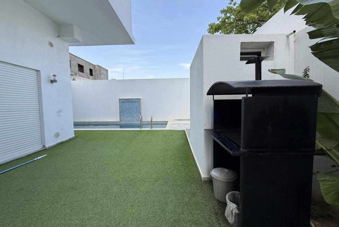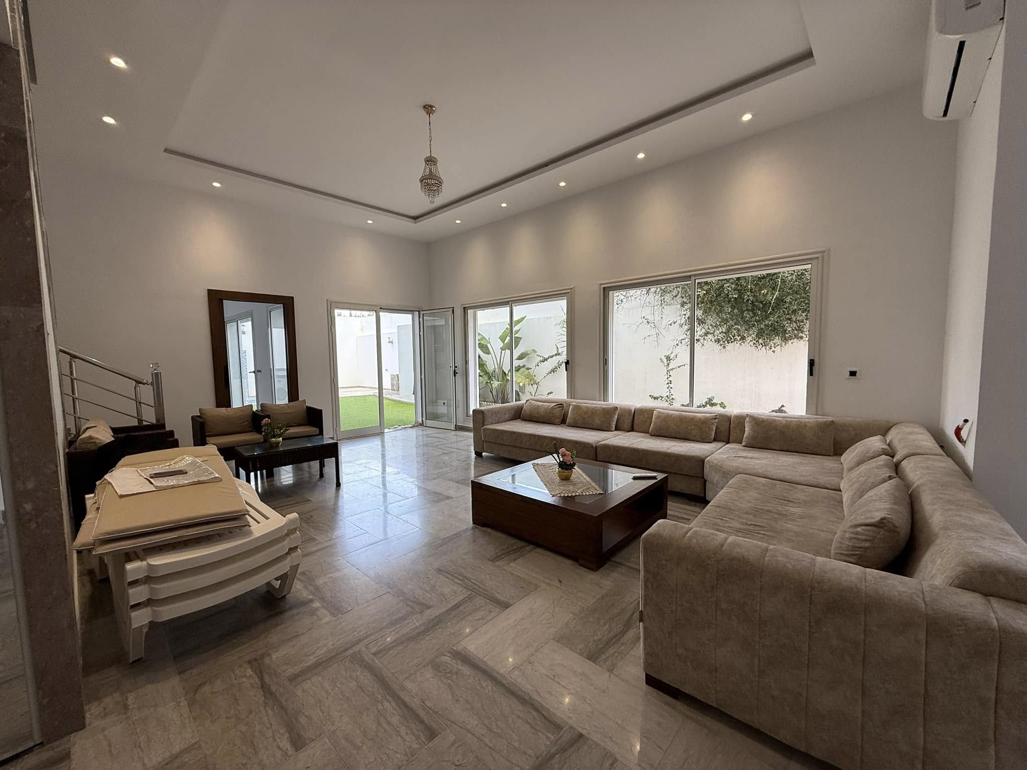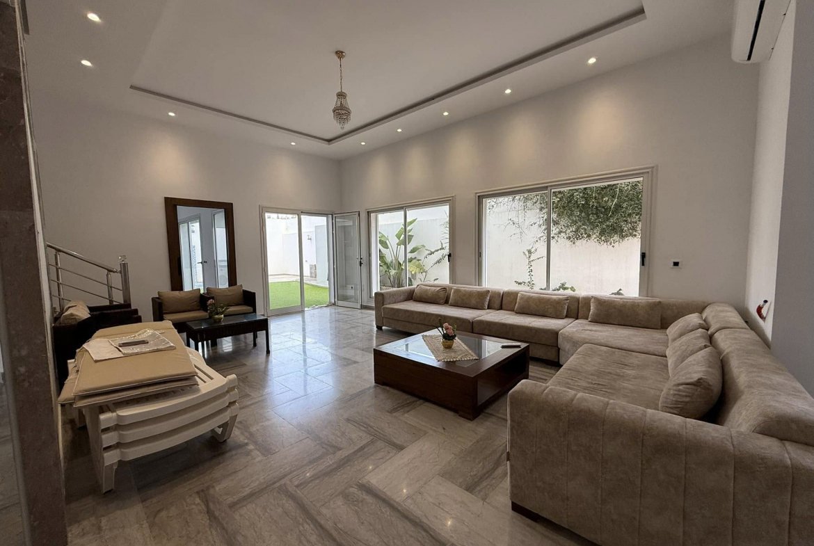 VIP BUSINESS REAL ESTATE AGENCY is delighted to offer a charming villa for rent in Hammamet Mrezga for the summer season—available during June, July, and August. Located near La Badira Hotel, this beautiful villa is nestled in a quiet residential area just steps from the beach. Perfect for a relaxing summer getaway, the villa for rent in Hammamet Mrezga offers the ideal mix of comfort, privacy, and proximity to the sea.