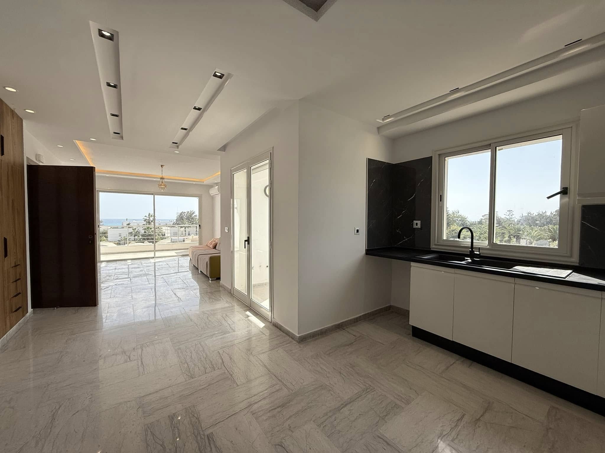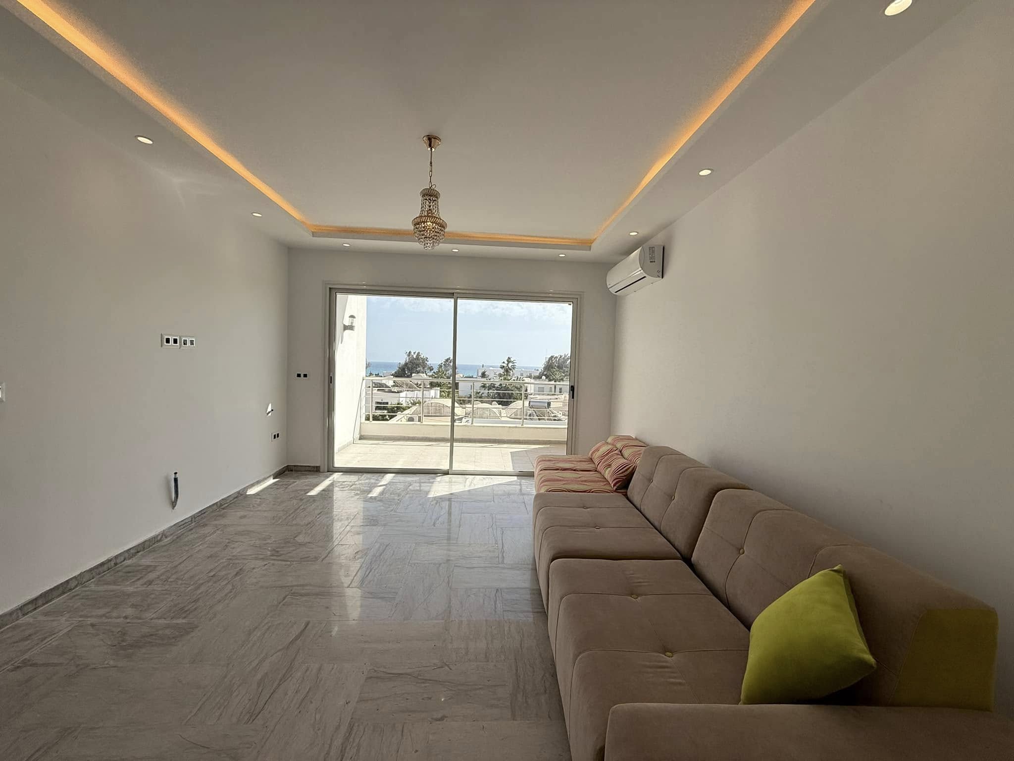 VIP BUSINESS REAL ESTATE AGENCY is pleased to offer this beautiful unfurnished apartment available for annual rent. Located in the sought-after Hammamet Mrezga area, near the prestigious La Badira Hotel, this apartment boasts a stunning sea view and is set within a peaceful residential neighborhood. Just steps away from the beach, it offers the ideal setting for those looking to enjoy coastal living in comfort and tranquility. The rental price is 2,000 TND per month.