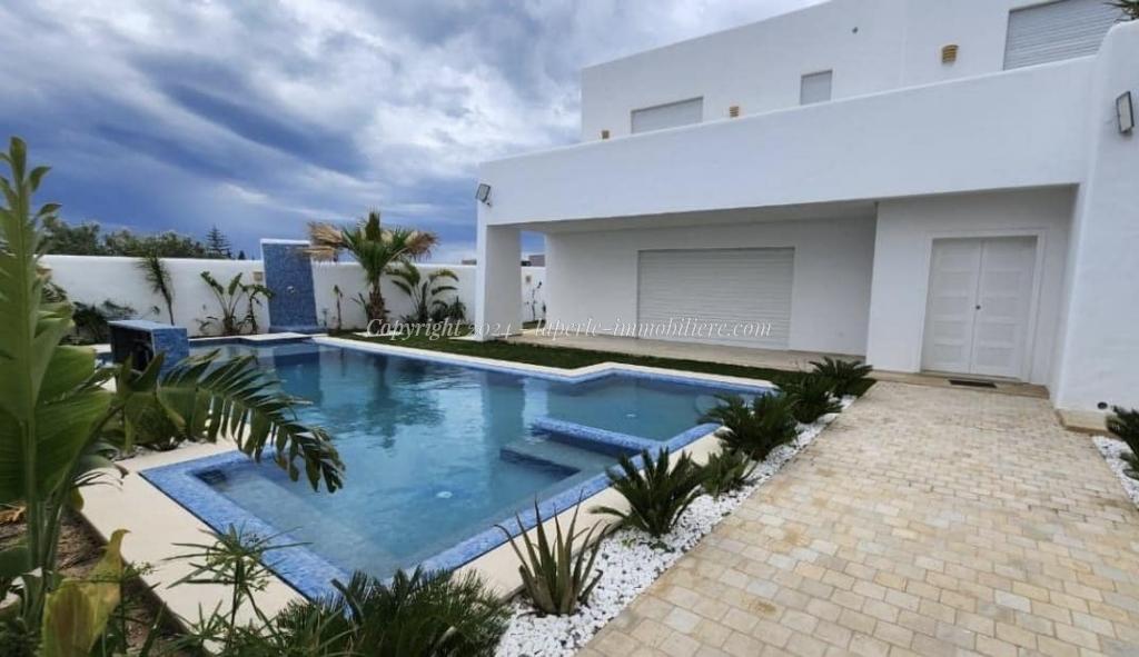 Introducing a Luxury Villa with Pool in Hammamet, blending high-standing design with traditional Hammamet-style elegance. Located in the prestigious Hammamet Besbasia area, just 5 minutes from Yasmine Hammamet and Carthage Land, this villa offers the perfect mix of comfort and convenience. Built on 630 m² of land with 340 m² of living space, it spans two levels. The ground floor includes a spacious living room with a charming fireplace, a modern kitchen, a guest suite, and a guest WC. The upper floor boasts three luxurious suites and a large terrace with a stunning view of the infinity pool.