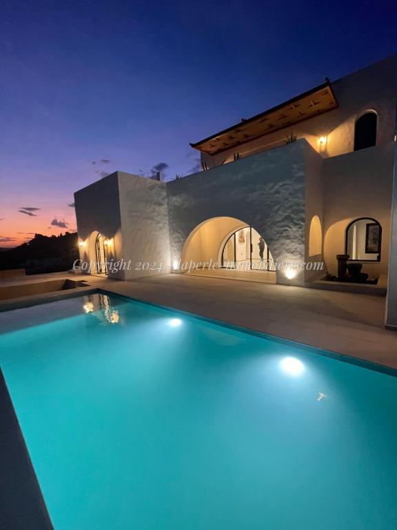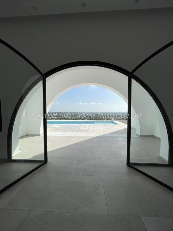 Presenting a rare opportunity to own a Unique Villa with Panoramic Sea View in Hammamet, located in the picturesque area of Hammamet Minchar. Spanning 700 m² of land with 240 m² of living space and a 140 m² terrace, this villa boasts a blend of stunning architecture and unique style. Designed for luxury and comfort, it includes 4 suites, a rustic kitchen, a dining room, and a spectacular 9×3 m pool with an outdoor lounge area. With its panoramic sea view and peaceful surroundings, this property is perfect as a guest house or a dream vacation home.