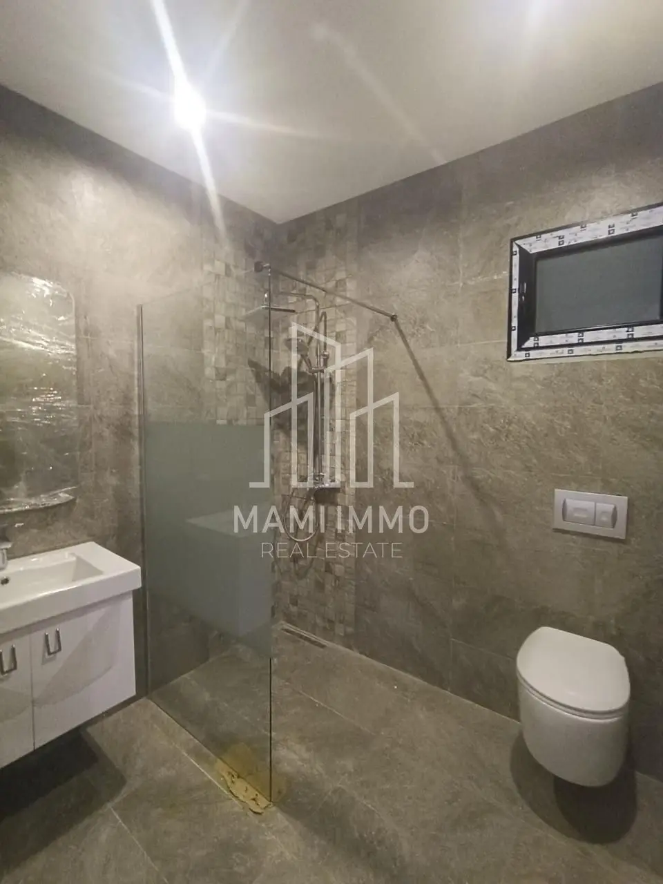 Mami Immo proudly offers a brand new S1 apartment for sale in Chotrana 1, directly from the developer. This modern apartment is perfect for those seeking comfort and convenience in a prime location. The apartment includes central heating and split air conditioning to ensure a comfortable living environment year-round. With a secure parking space and private car shelter, residents enjoy peace of mind and ease of access.