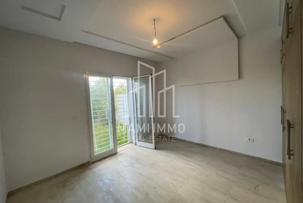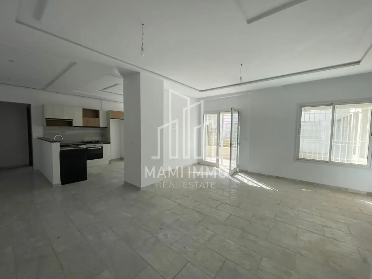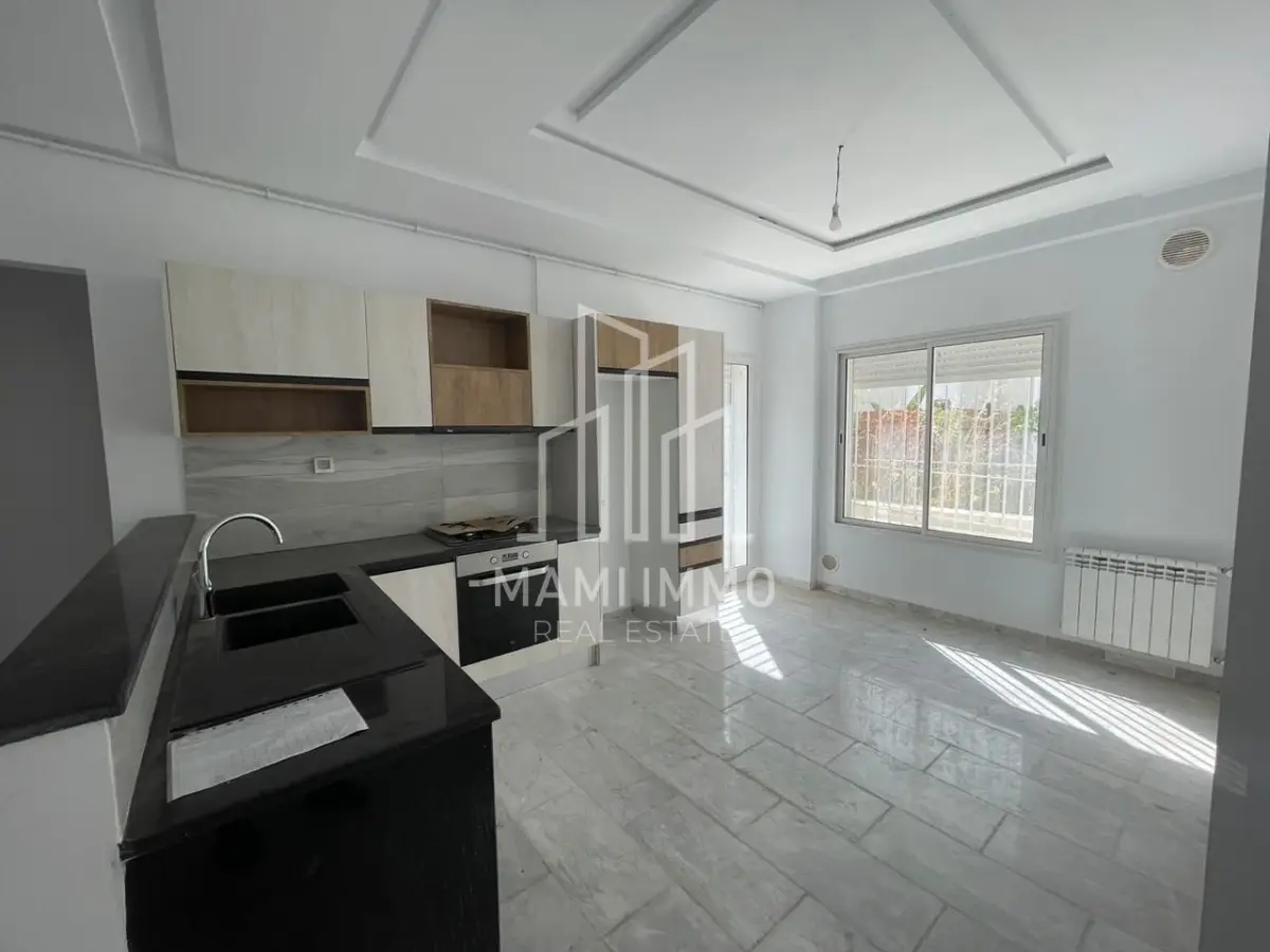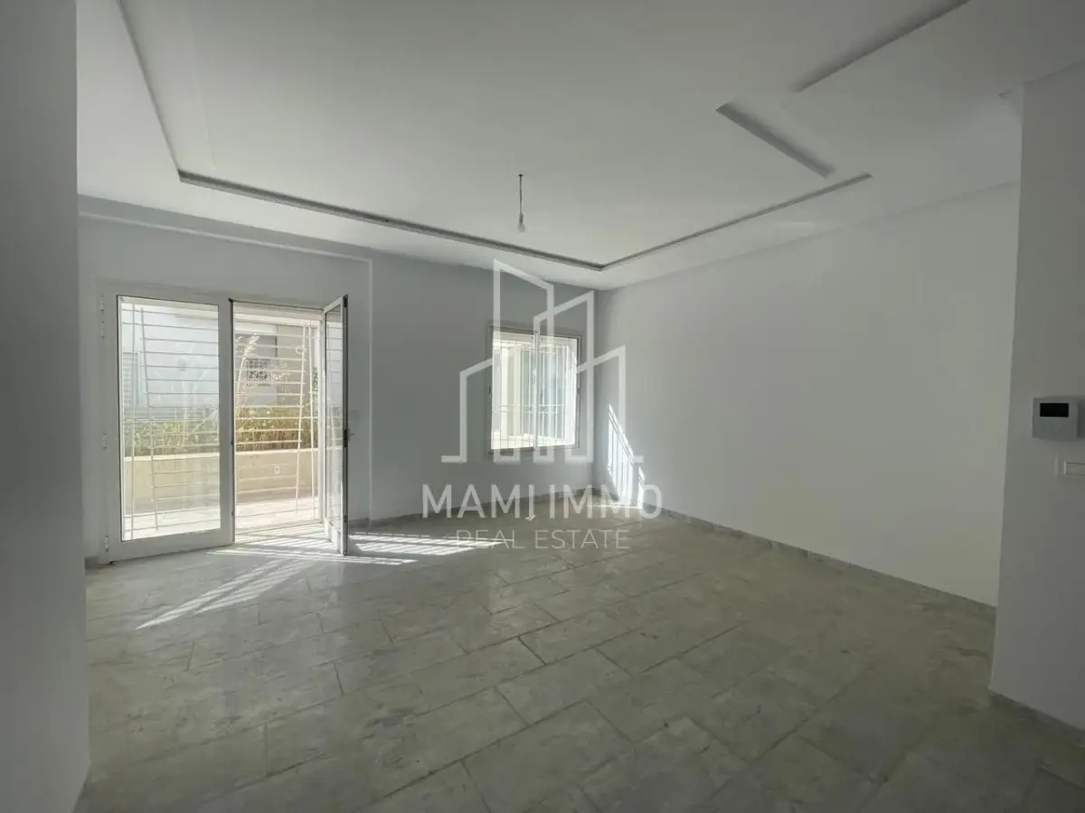 Mami Immo presents a beautiful ground floor apartment for sale in La Soukra. This spacious apartment for sale in La Soukra offers 114 m² of living space with a well-equipped open kitchen and two bedrooms sharing a common bathroom. The property also includes a lovely garden and a large terrace measuring 63.5 m², perfect for outdoor relaxation and entertainment.