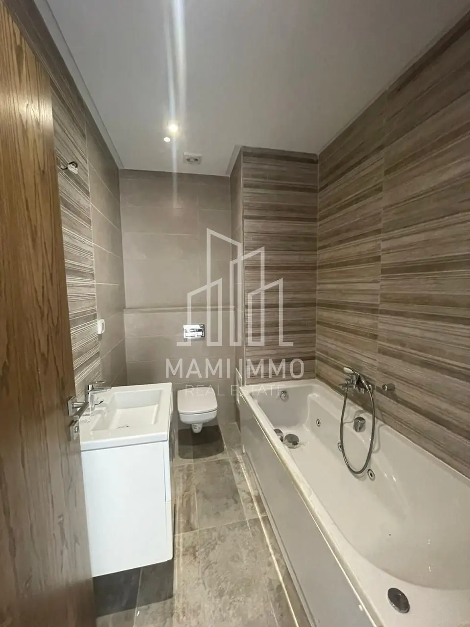 The apartment comes with a secure parking space located in the underground garage, providing convenience and safety. Additional features include central heating and split air conditioning to ensure comfort all year round. This apartment for sale in La Soukra combines modern living with ample outdoor space in a desirable location.