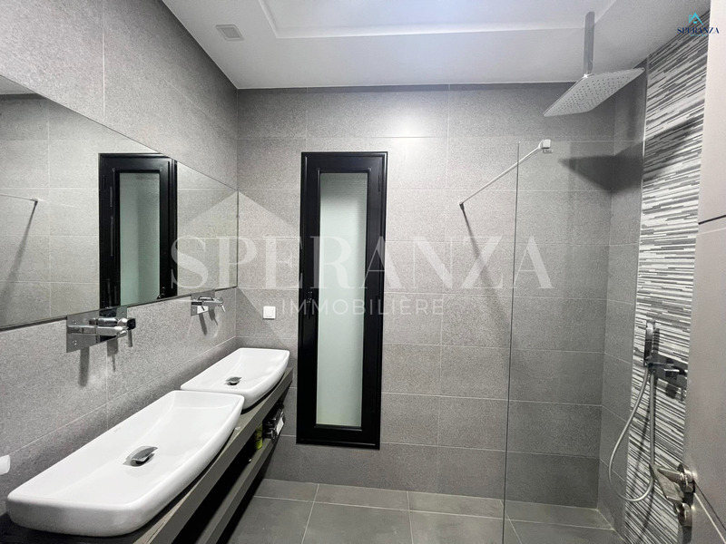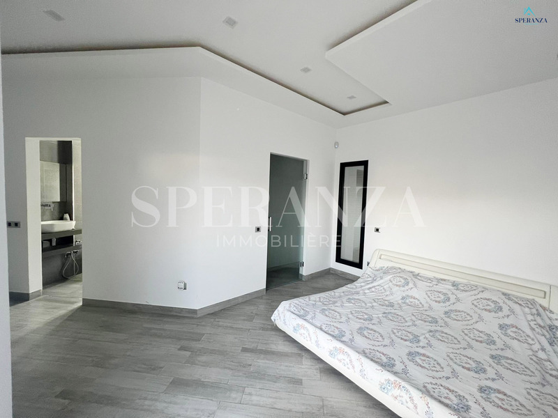 The night area consists of two beautifully furnished bedrooms with wardrobes, and a spacious master suite complete with its own bathroom and dressing area. The villa is fully equipped with central heating, air conditioning, and TV, and also offers a private garage. This S+3 Vacation Villa Aline for Rent in Maamoura, Nabeul is ideal for a peaceful and comfortable holiday. Price varies depending on the season. For more information, contact Speranza Real Estate at ☎️ 23555199 / 50552450 / 51970200