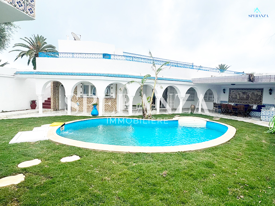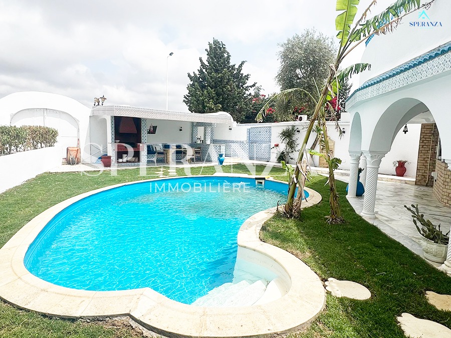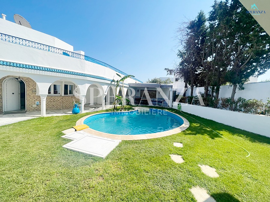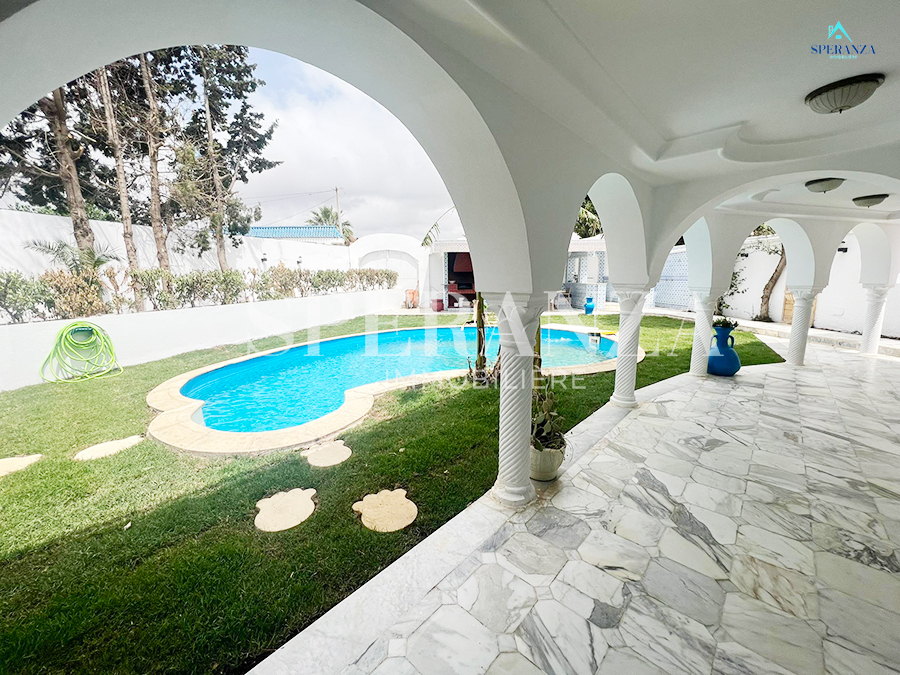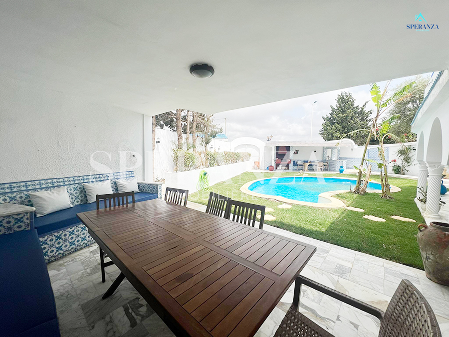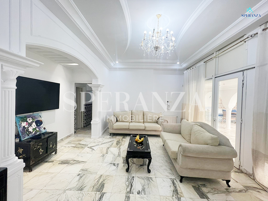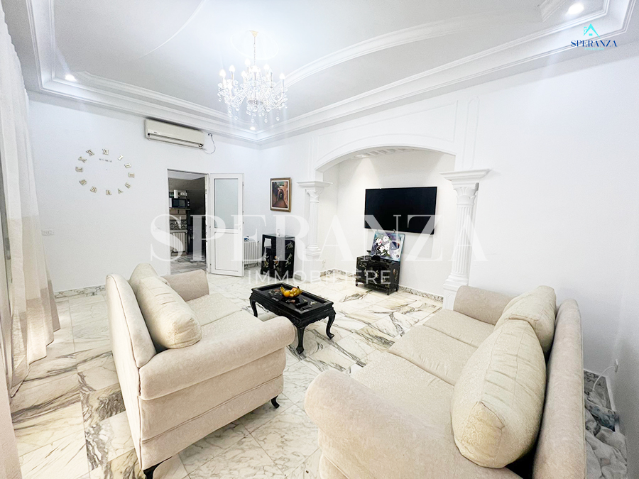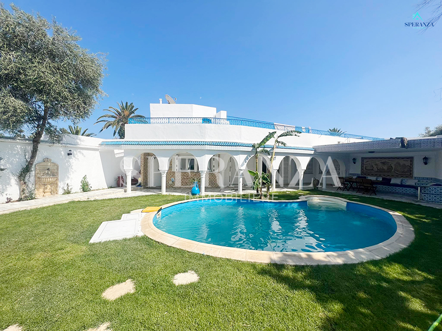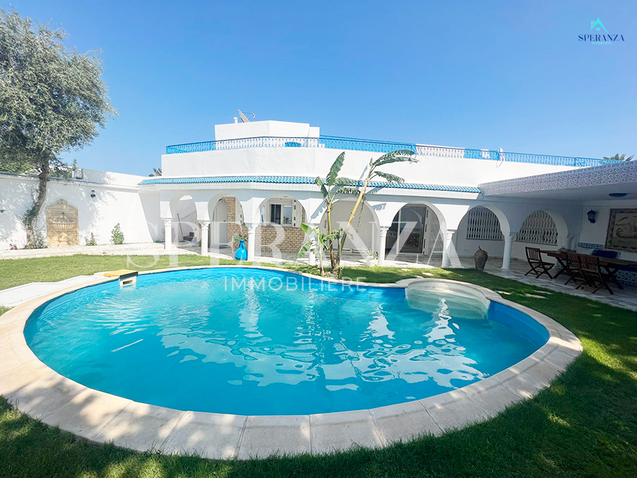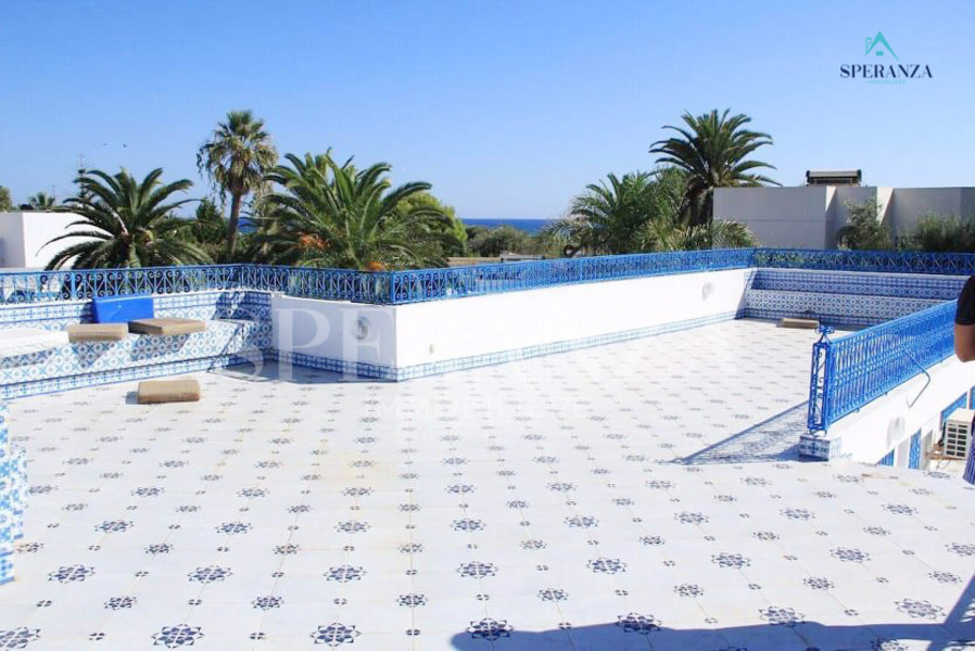 Speranza Immobilière Hammamet offers the serene S+4 Vacation Villa Scabieuse for Rent in Nabeul, ideally located just 100 meters from the beach and close to all local amenities. This spacious villa features a living area of 380 m², a lush green garden, and a private pool perfect for relaxing summer days. The ground floor includes a large, sunlit living room, a fully equipped kitchen with ample storage, and a guest bathroom.